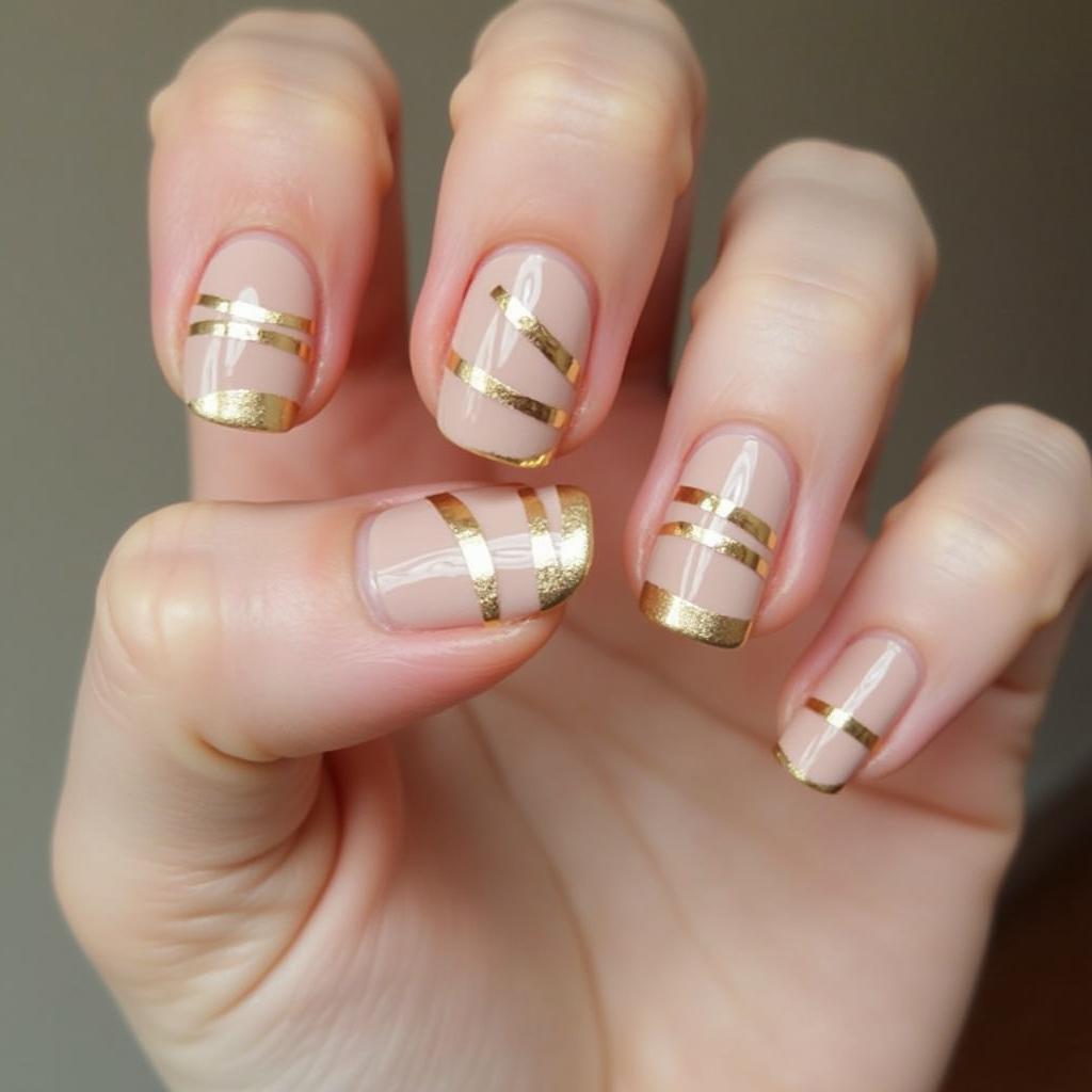 Add thin gold stripes to a nude base for a luxurious and minimalist spring look.