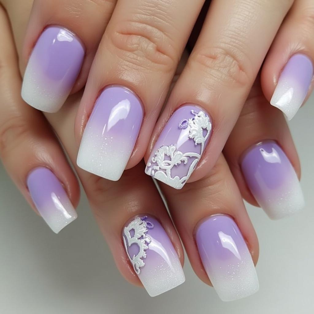 Opt for a lavender ombre with white lace detailing on the tips for a dreamy, soft look.