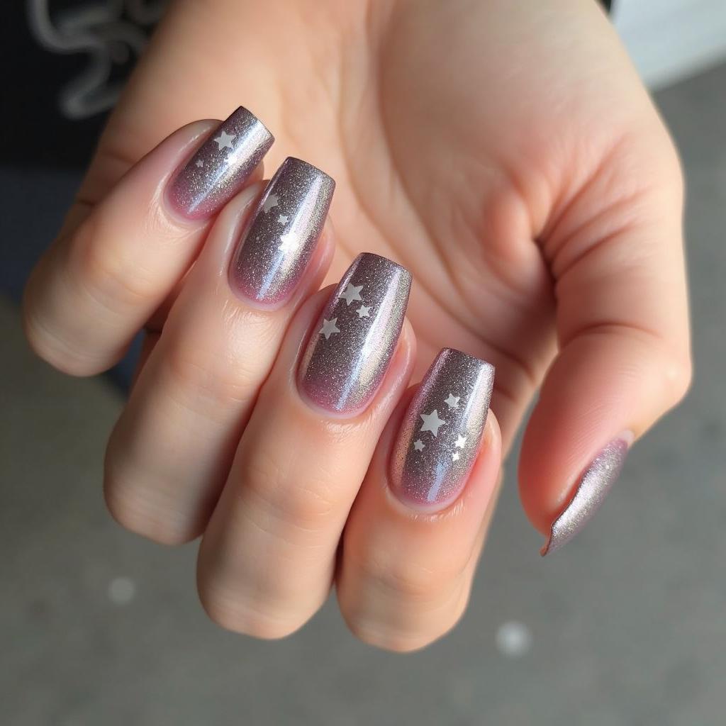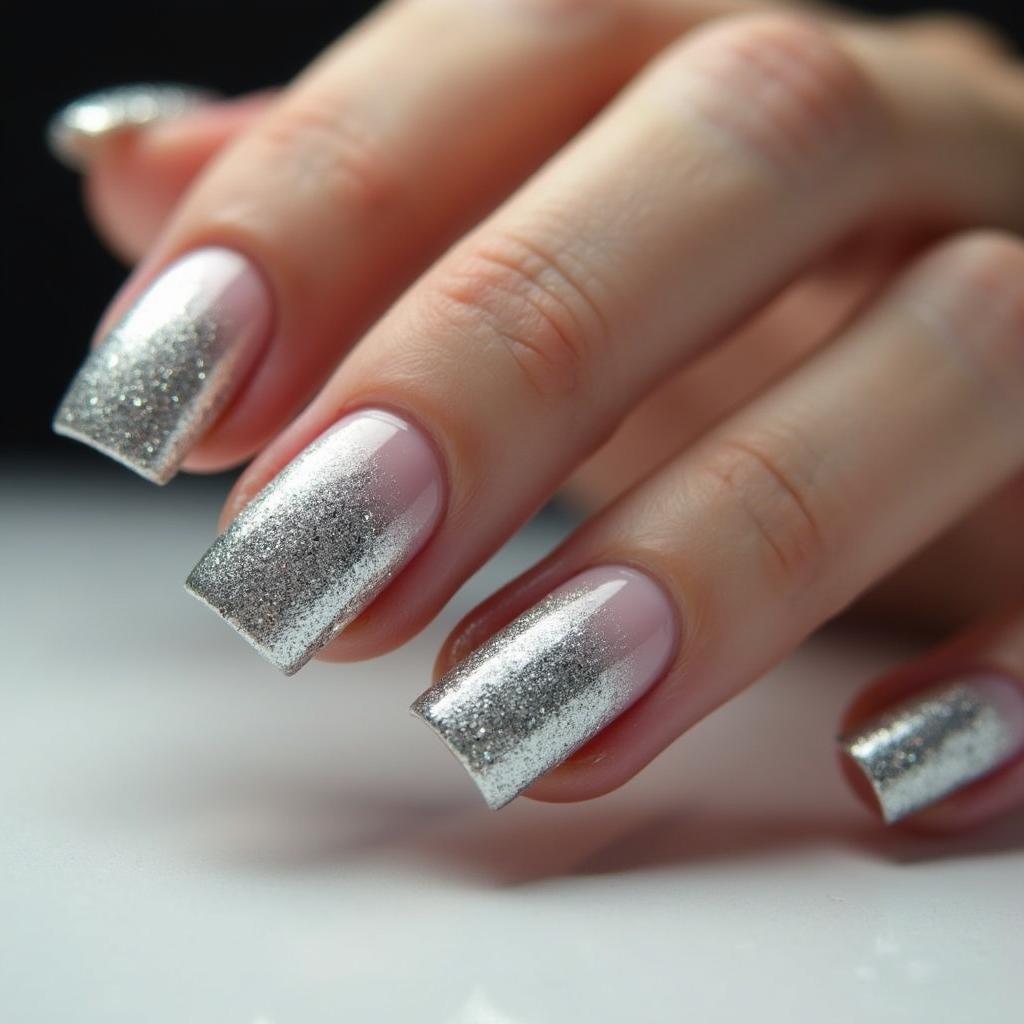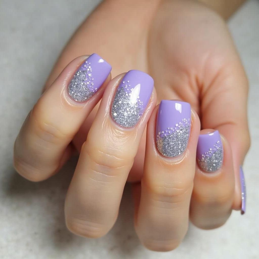 Blend silver glitter into a soft pastel base for a sophisticated, understated glam look.