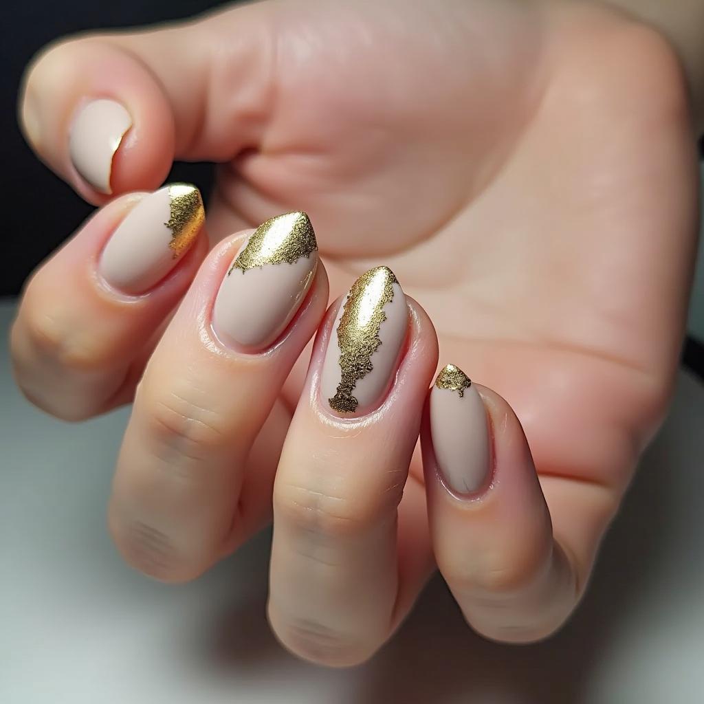 4. Nude and Gold Leaf Nails