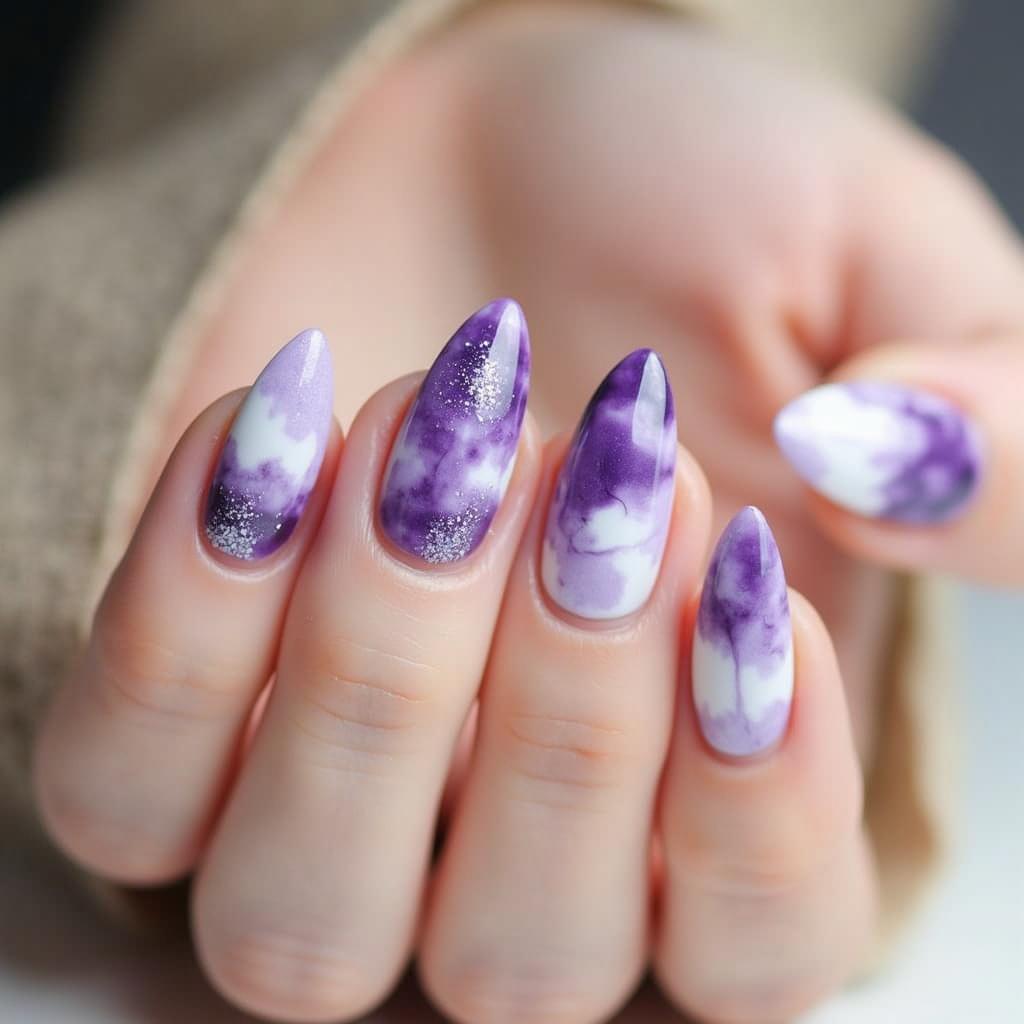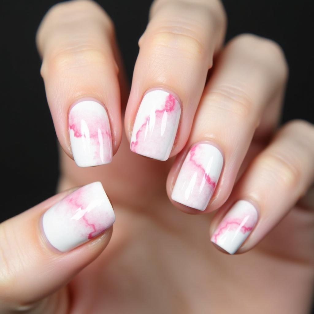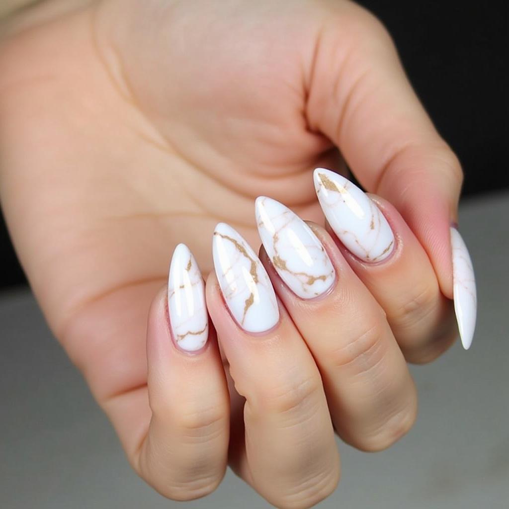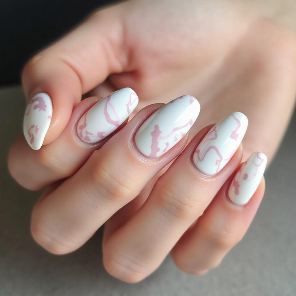 5. White Marble Nails