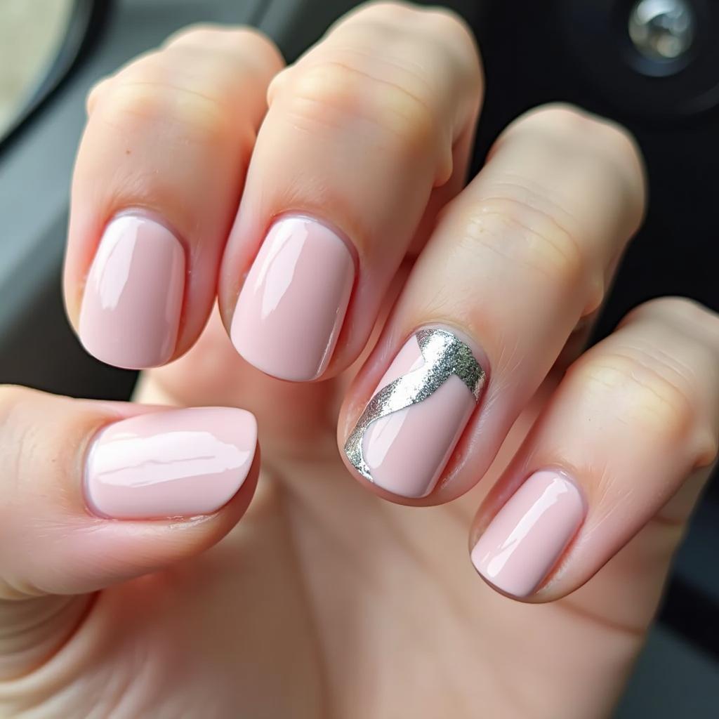 Nude nails are classic and chic, and when paired with silver leaf, they gain an extra level of sophistication.
