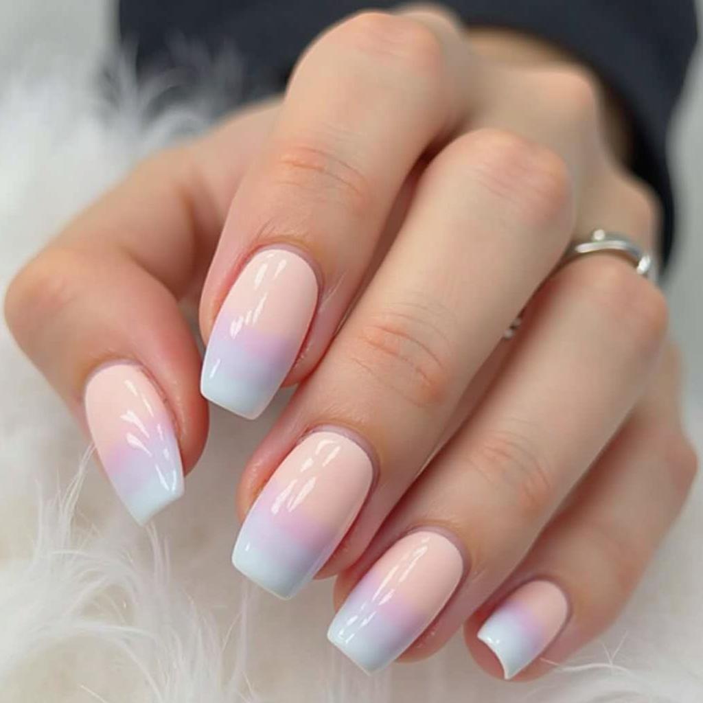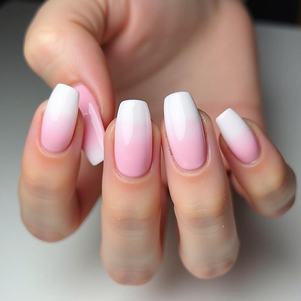 6. Soft Pink and White Gradient Nails