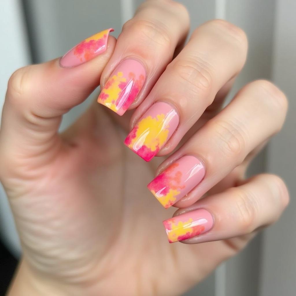 7. Floral Watercolor Nails