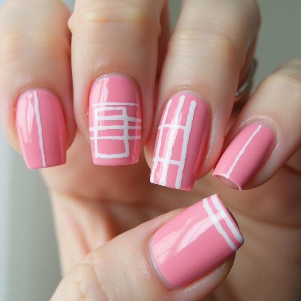 Create white horizontal stripes over a soft pink base for a clean and chic design.