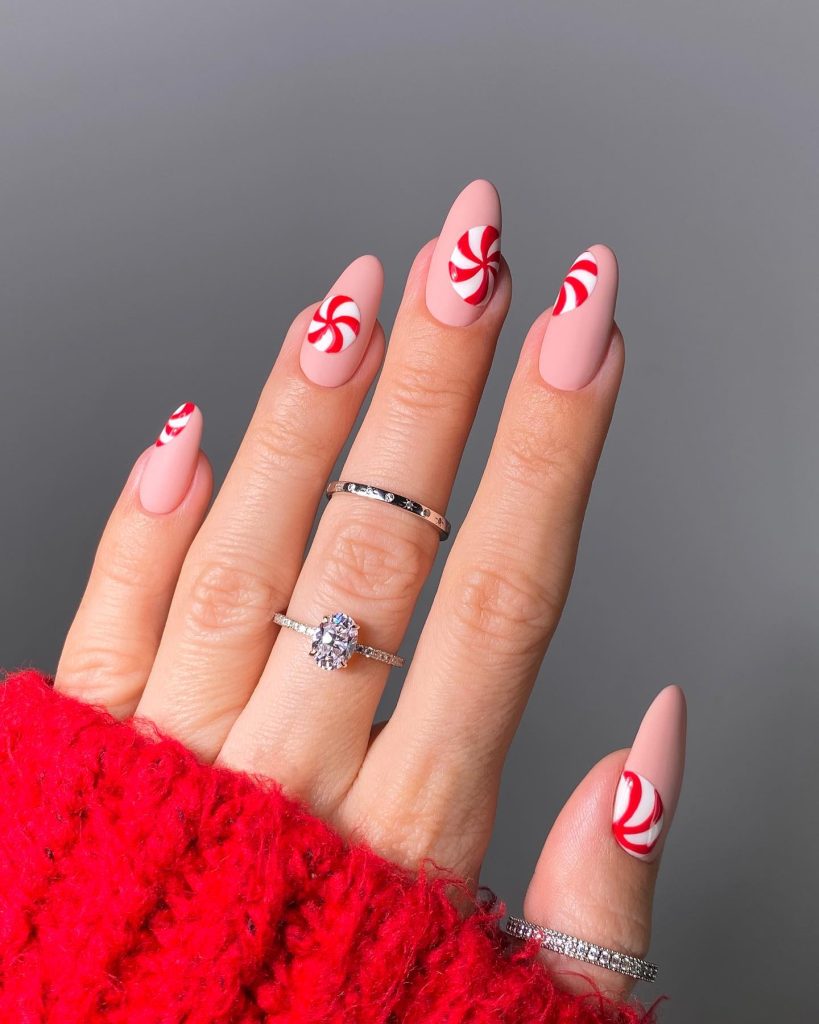 Candy cane stripes are a Christmas classic. Bold red and white diagonal stripes on your nails will make a statement at any holiday event.