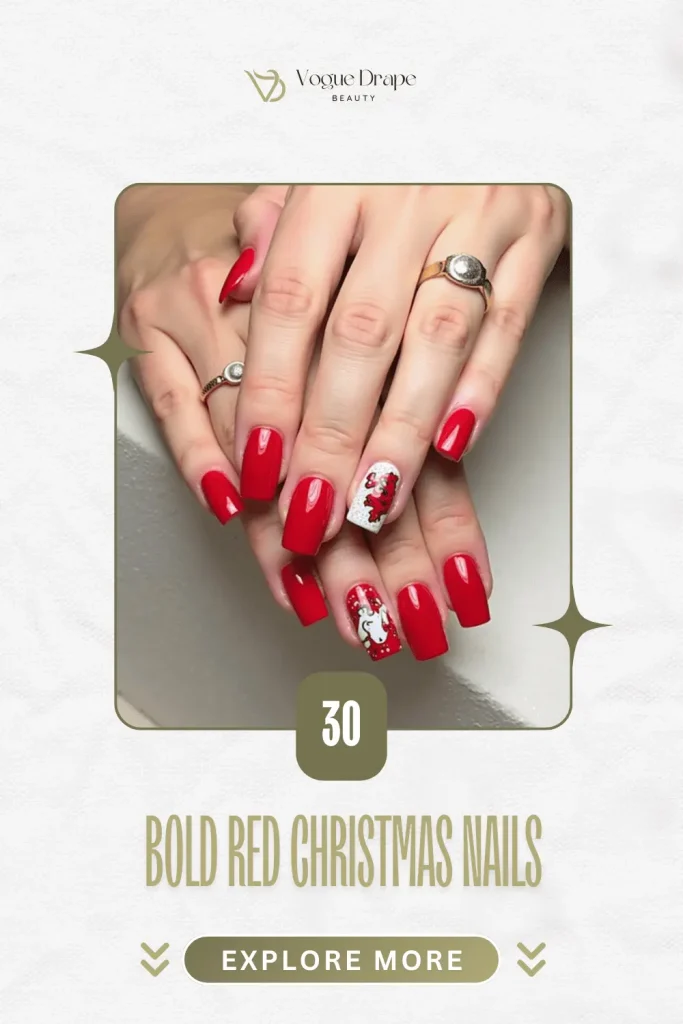 Red is the ultimate color for Christmas, embodying the festive spirit, warmth, and joy of the season. Whether you’re looking to make a bold statement at a holiday party or simply want to add a pop of color to your everyday winter look, these 30 bold red Christmas nails will help you achieve a classic, timeless vibe. From rich crimson hues to shimmering metallics, these red nail designs will make your holiday season even more stylish.