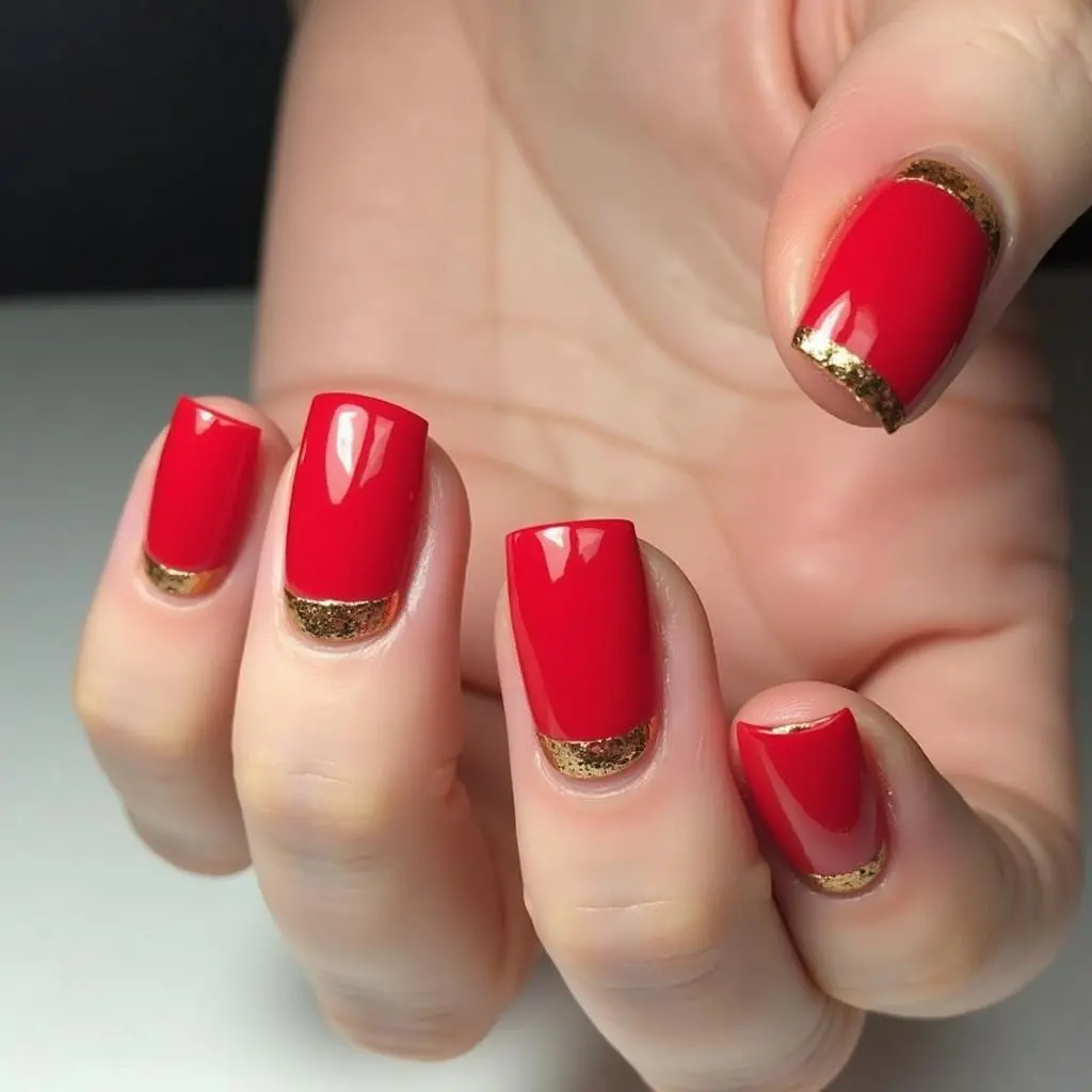 A bold red base paired with gold tips creates an elegant, festive look. The gold accents add just the right amount of sparkle, making this design perfect for Christmas parties.