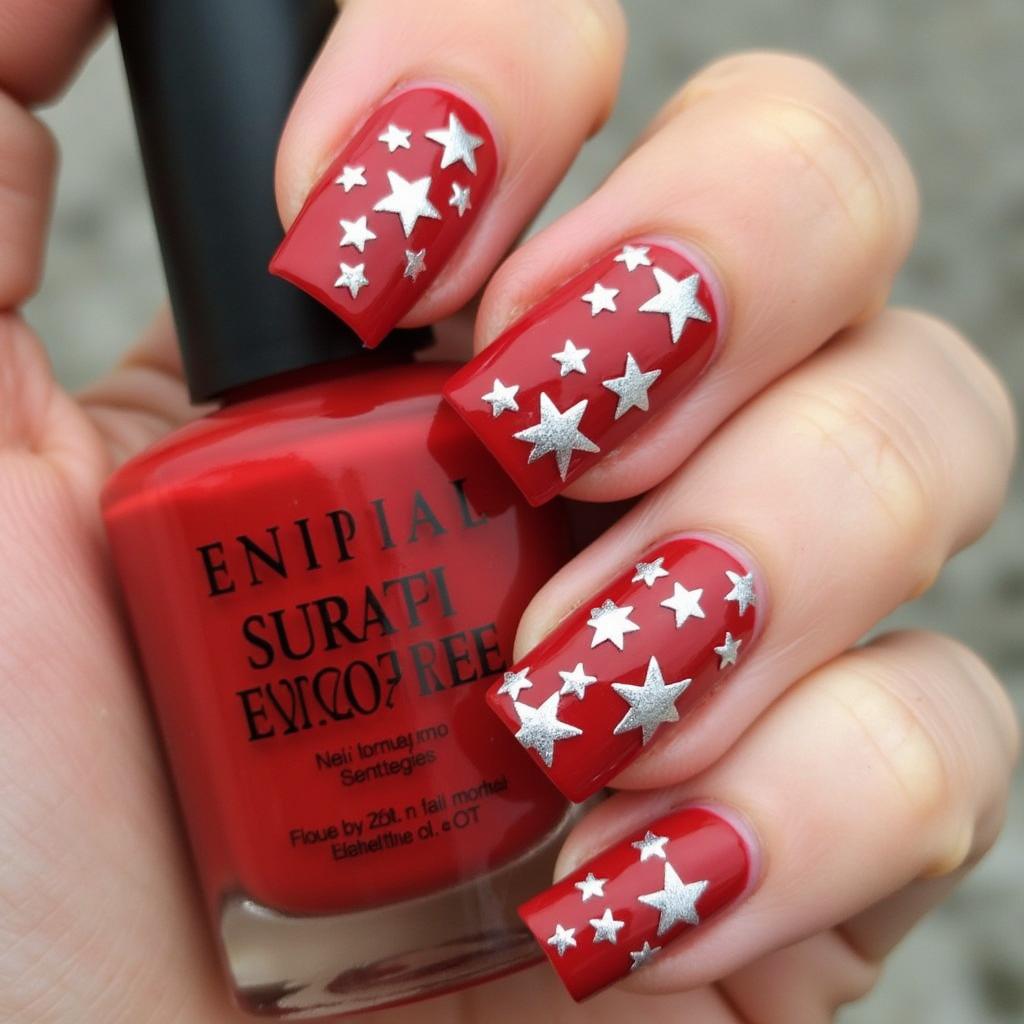 Add silver stars to your red nails for a playful yet elegant design. The stars bring a bit of twinkle and charm, perfect for celebrating the holiday season in style.