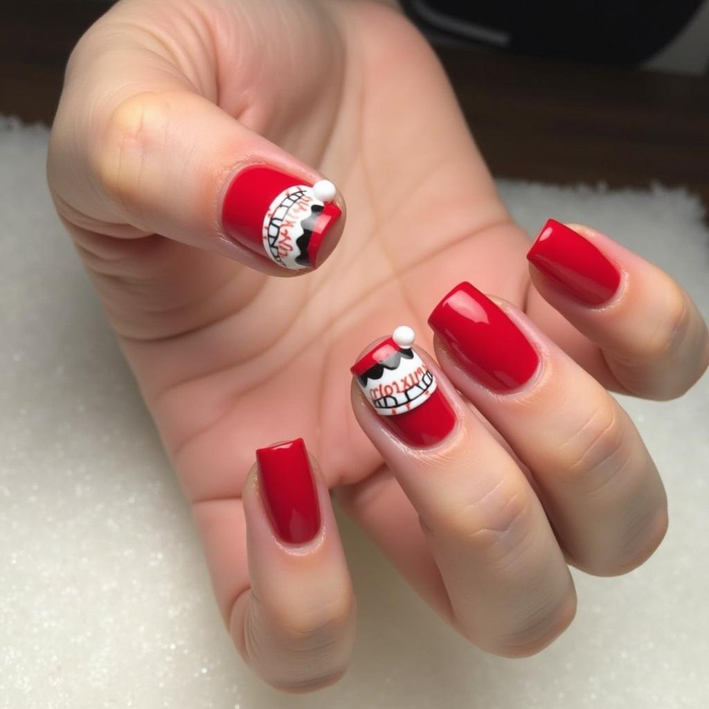 Add a playful Santa hat to an accent nail, paired with a classic red base for a whimsical, holiday-themed look. This design is perfect for those who want to celebrate in a fun and festive way.