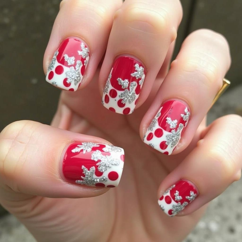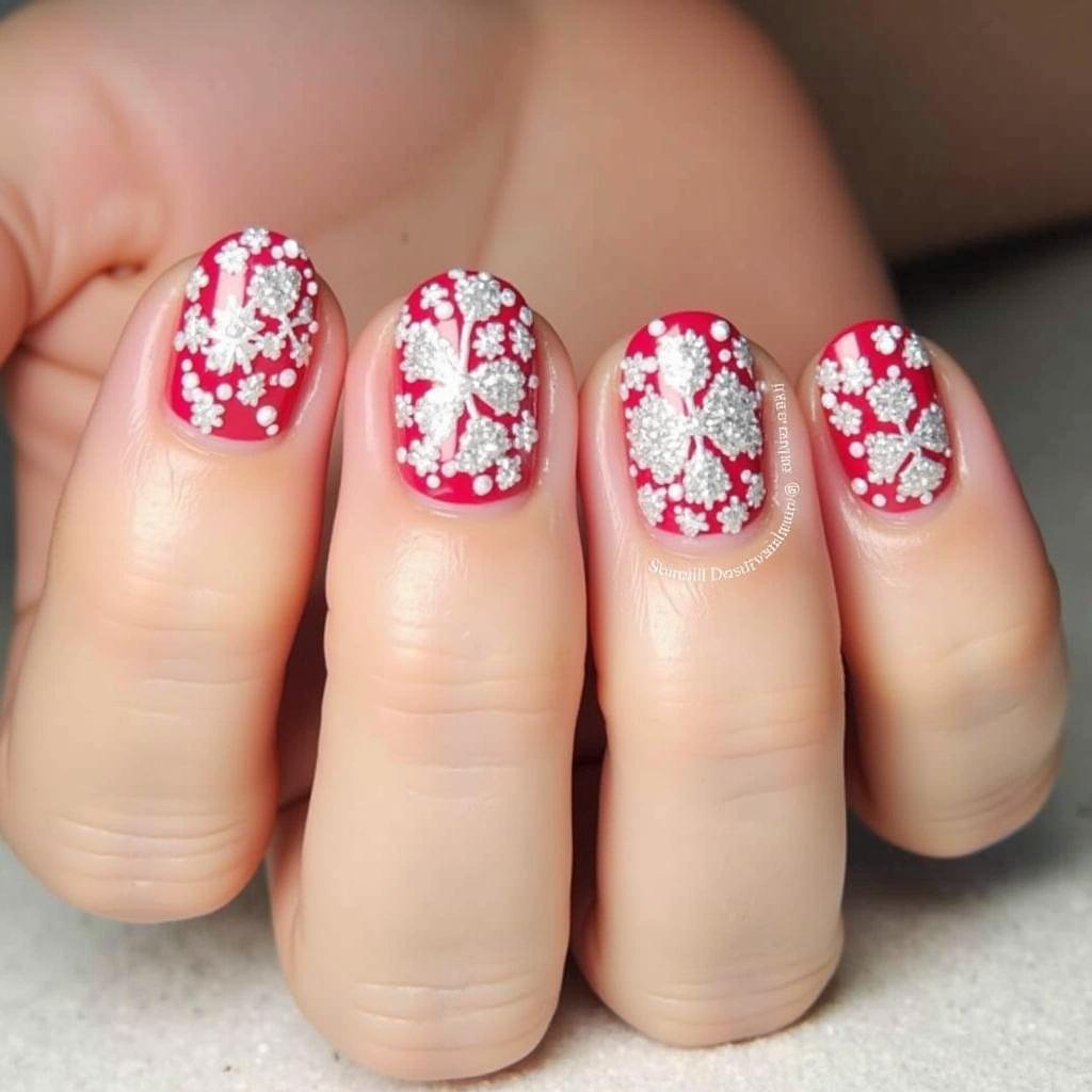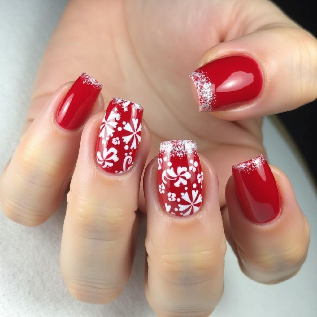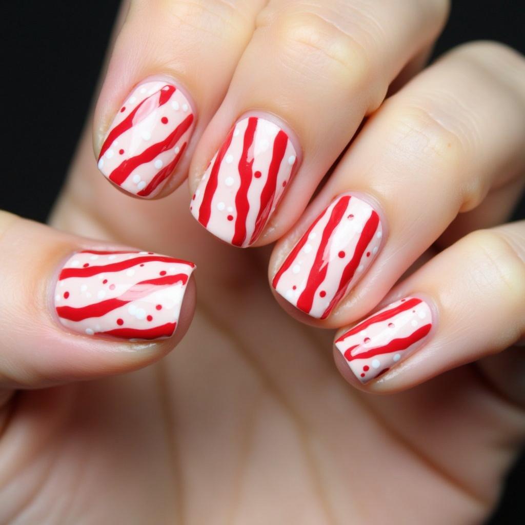 Combine the classic red and white candy cane stripes with a bit of silver glitter at the tips or along the stripes for a dazzling effect. This design is perfect for those who want a little extra glam for their holiday nails.