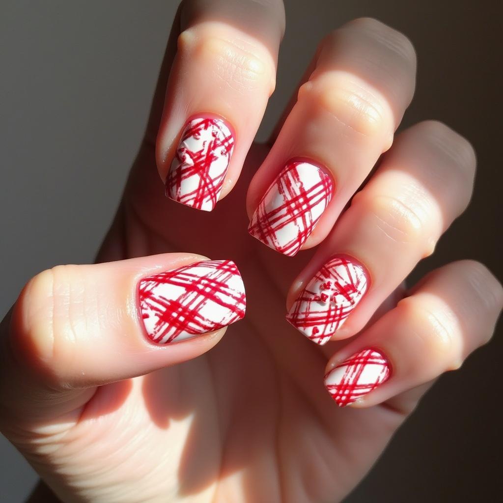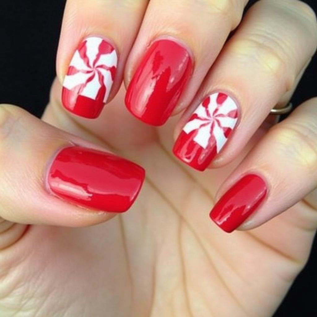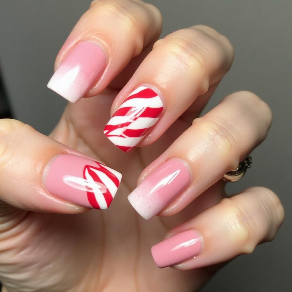 For a softer take on the candy cane theme, try an Ombre effect with red and white shades. The Ombre transition adds a gradient of color that mimics the look of a candy cane, while still keeping the design subtle and chic.