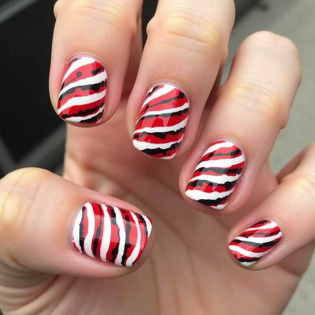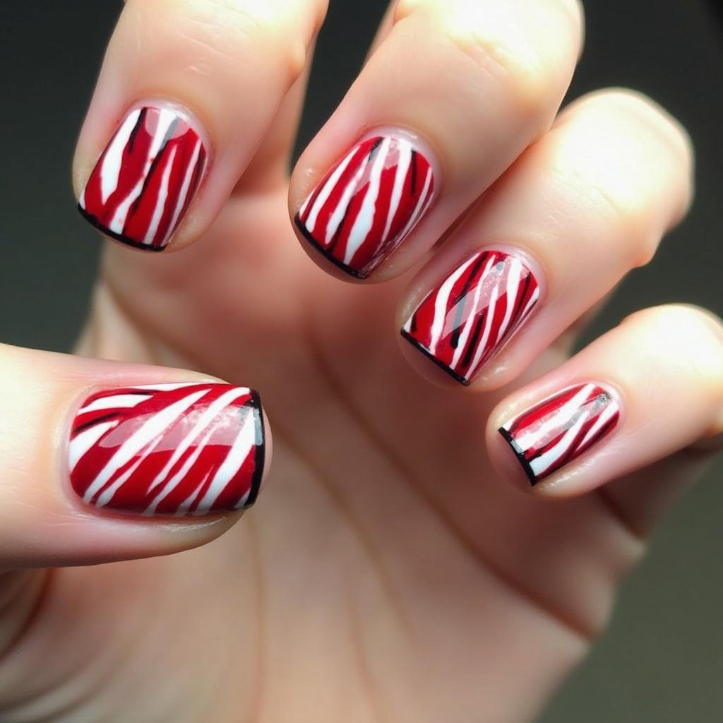 Create a contrast by pairing red and white candy cane stripes with black detailing. Thin black lines or accents around the edges of the candy cane stripes add a graphic, edgy feel to the design