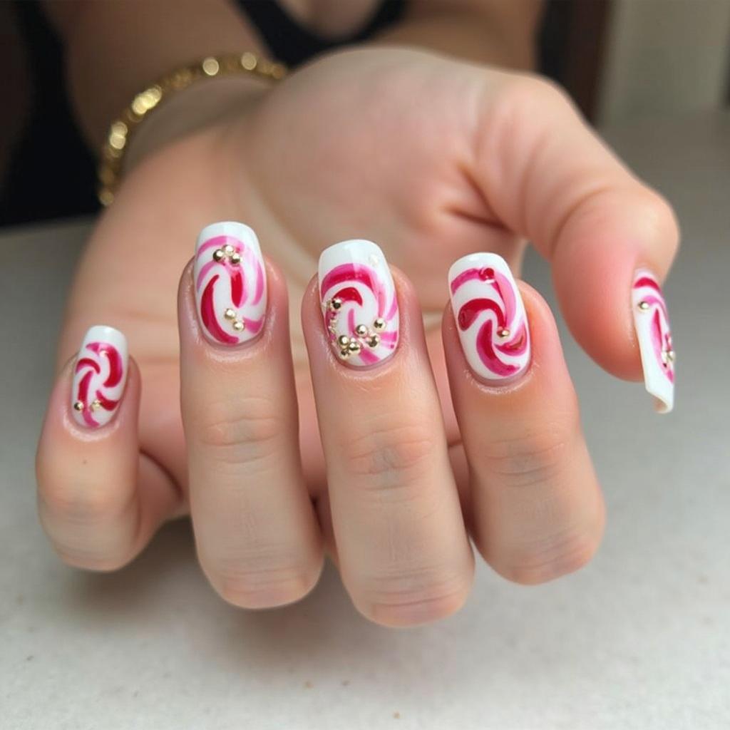Instead of traditional stripes, try a swirling candy cane design. The swirls create a playful and whimsical effect, capturing the essence of the holiday season in a unique and fun way.