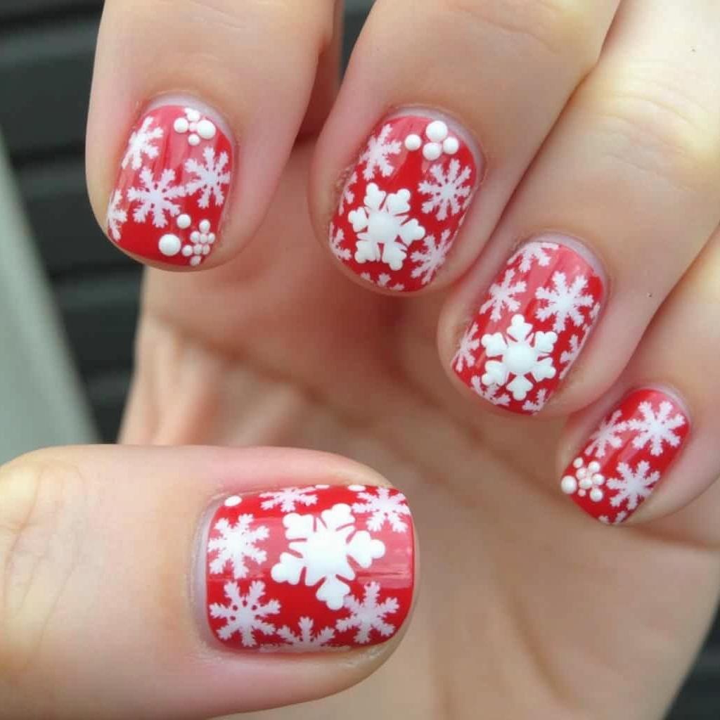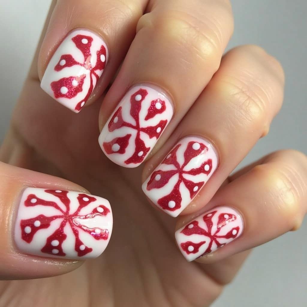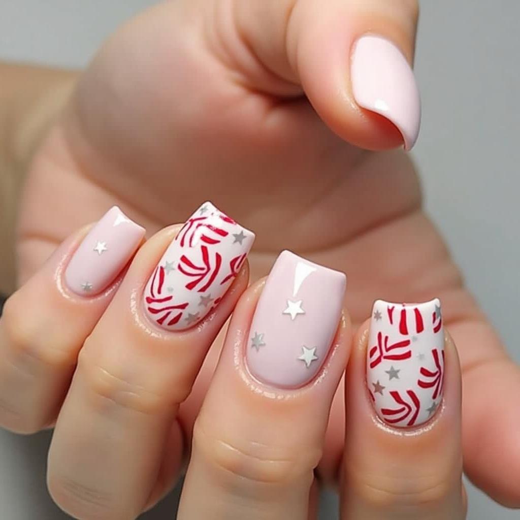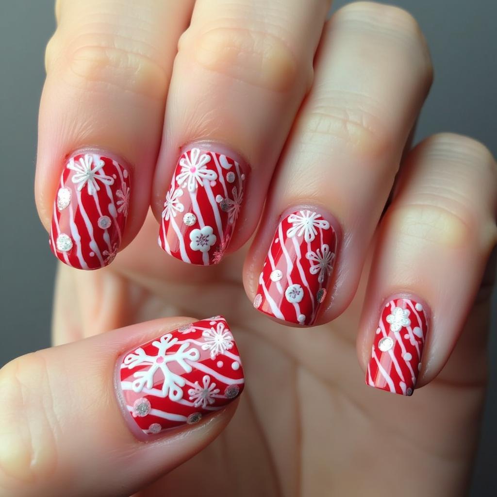 Combine candy cane stripes with delicate snowflake accents for a winter wonderland effect. The snowflakes add a touch of frostiness, making this design perfect for the colder months.
