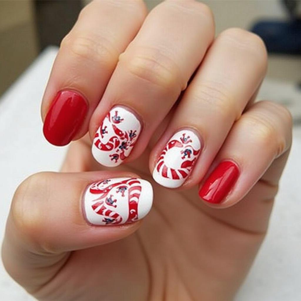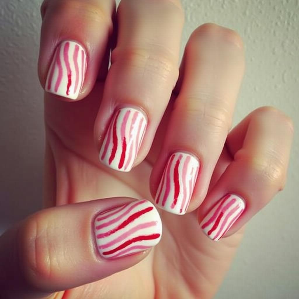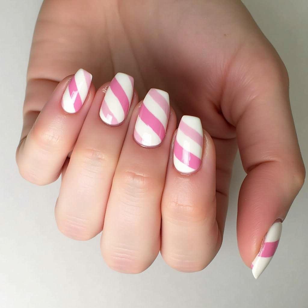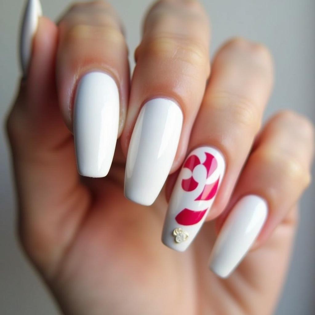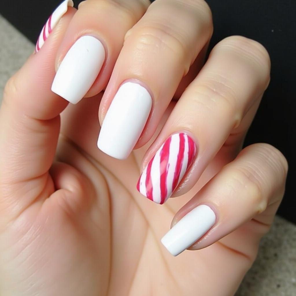 If you prefer a more understated look, create one or two candy cane accent nails. Use the candy cane stripes on just one or two nails for a playful touch, while keeping the rest of your nails in a neutral shade.