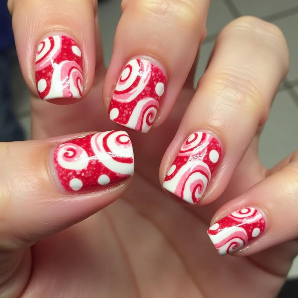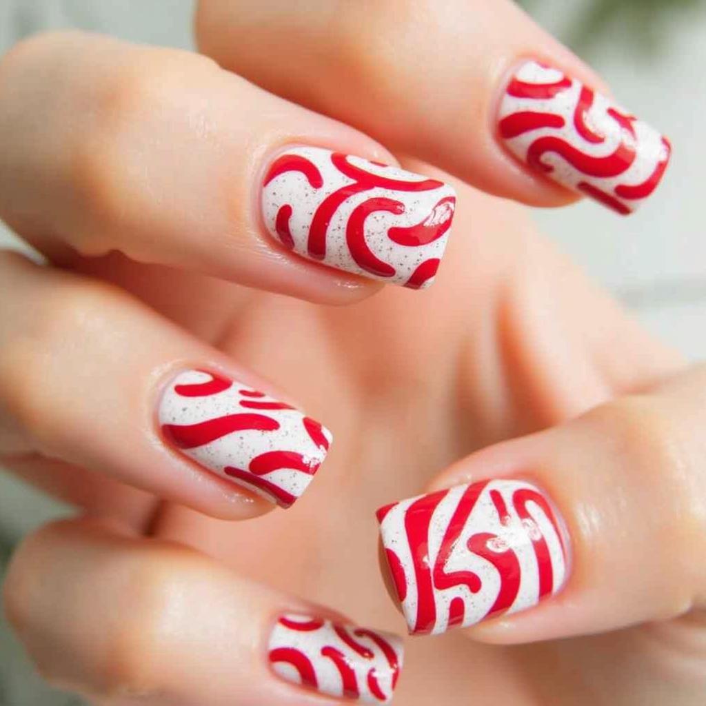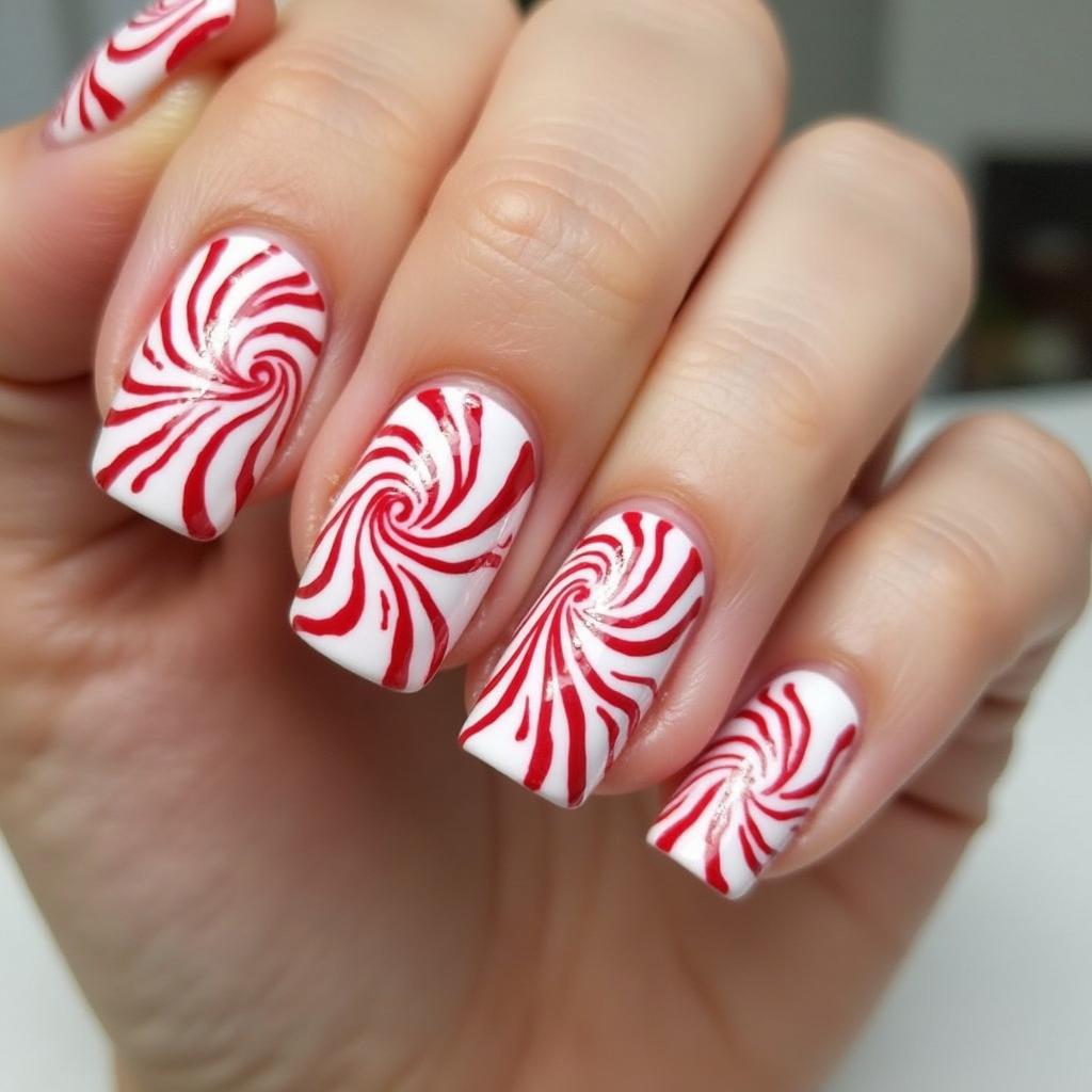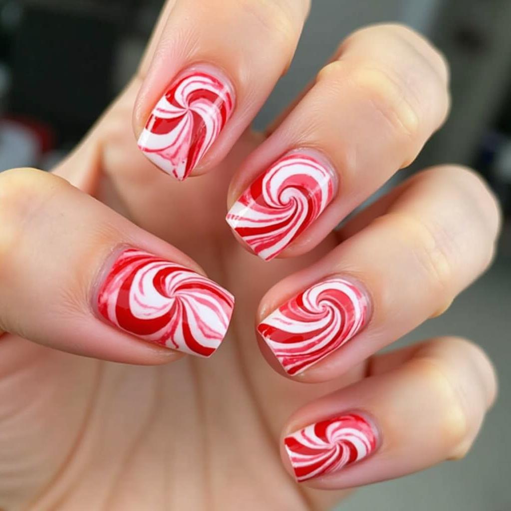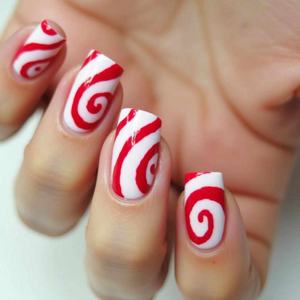 11. Candy Cane Swirl Nails