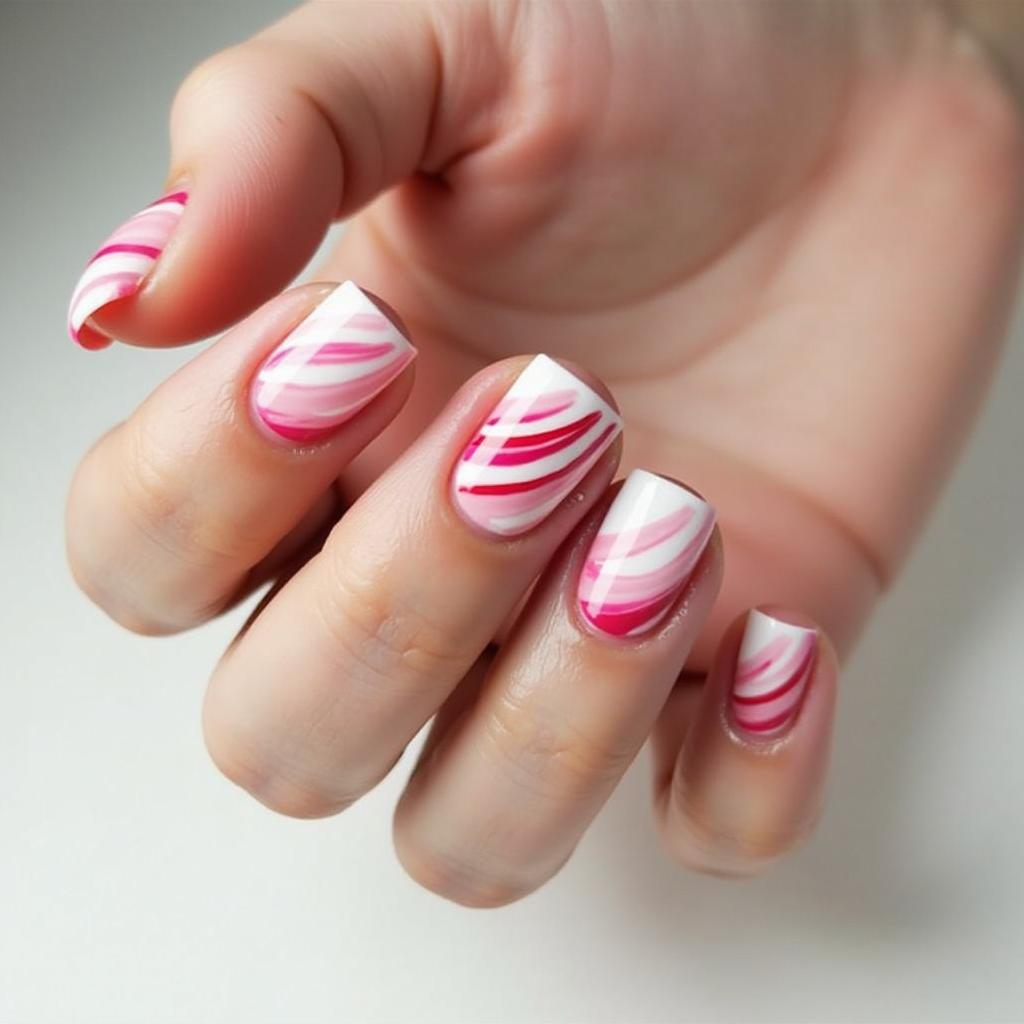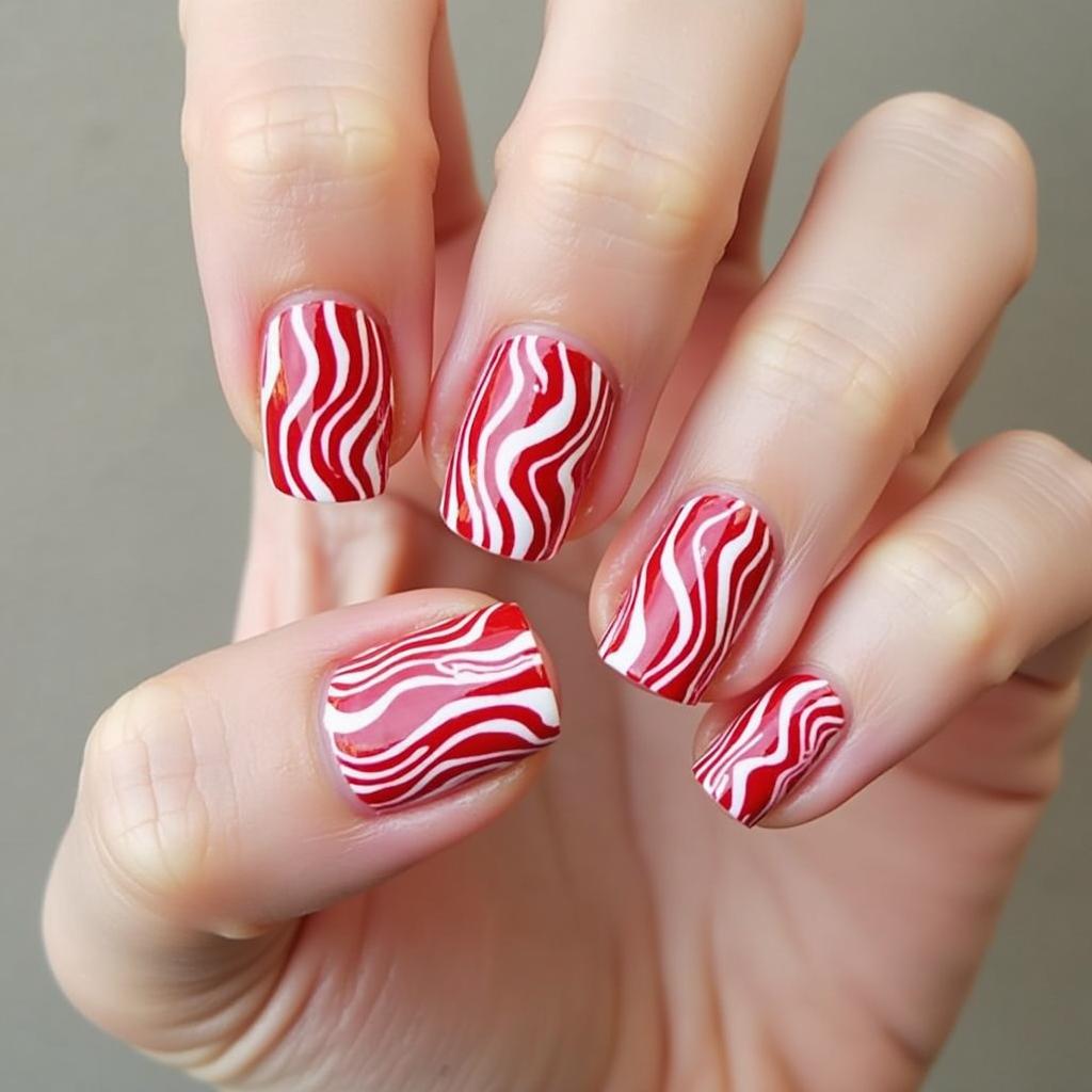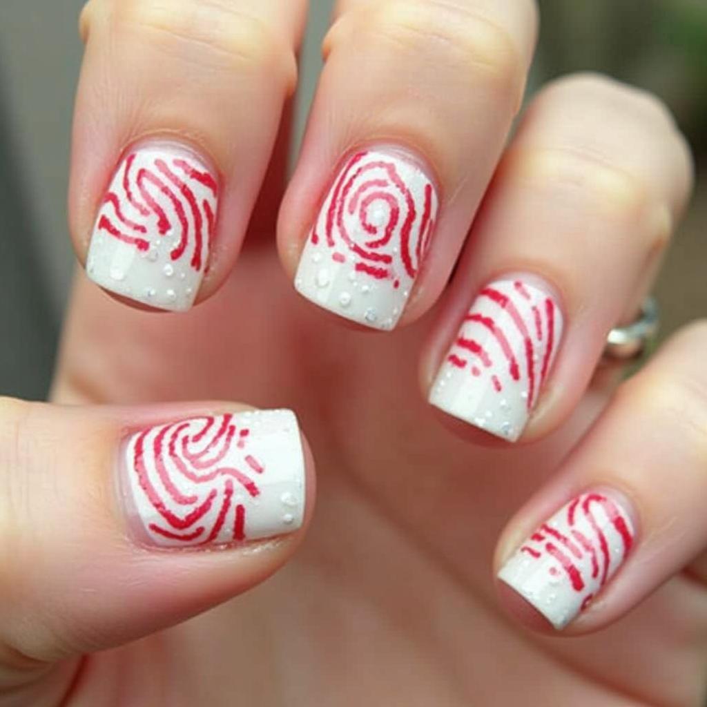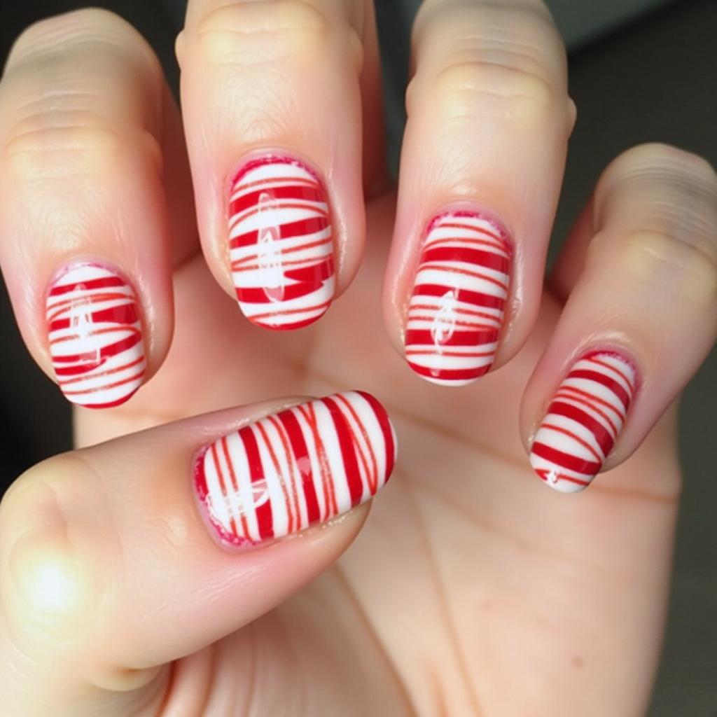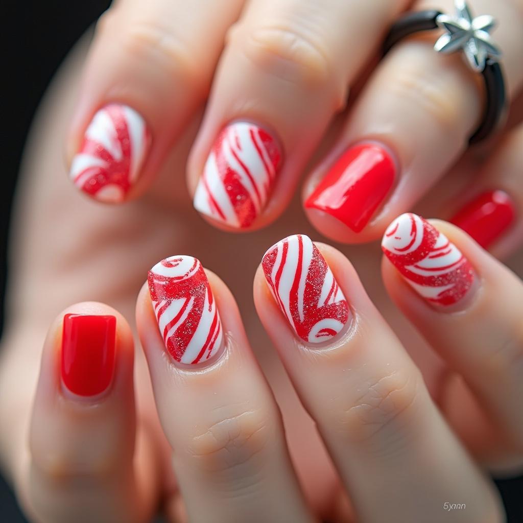 11. Candy Cane Swirl Nails