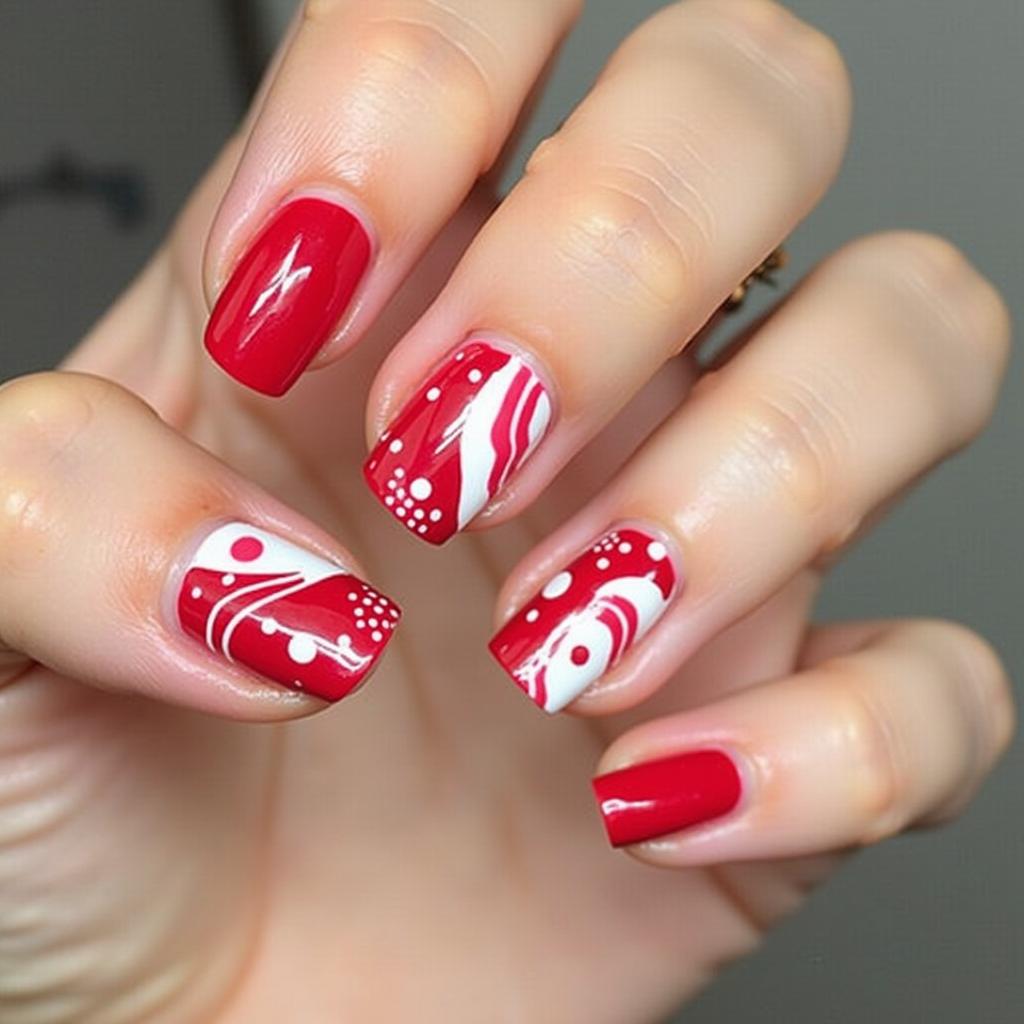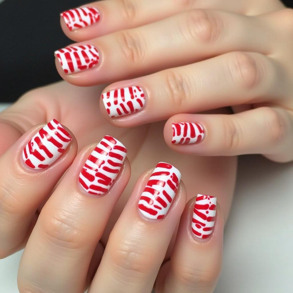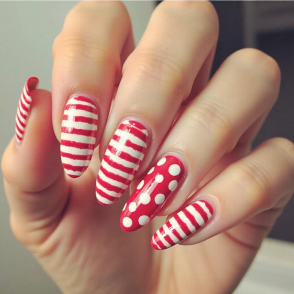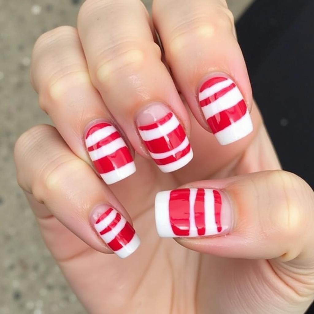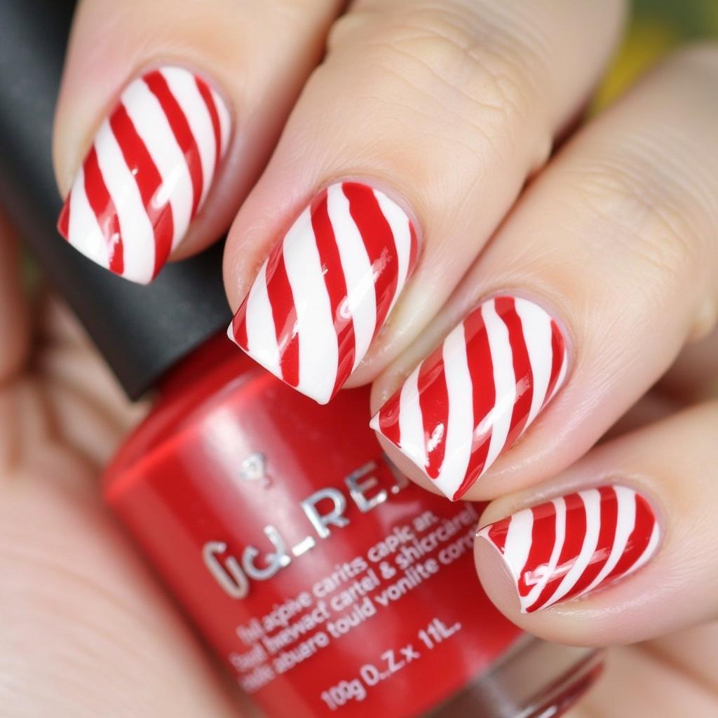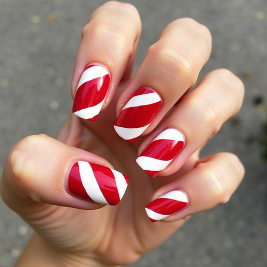 Use both red and green to create a candy cane stripe design. The combination of red and green adds a vibrant, bold touch to your holiday nails, perfect for those who love traditional Christmas colors.