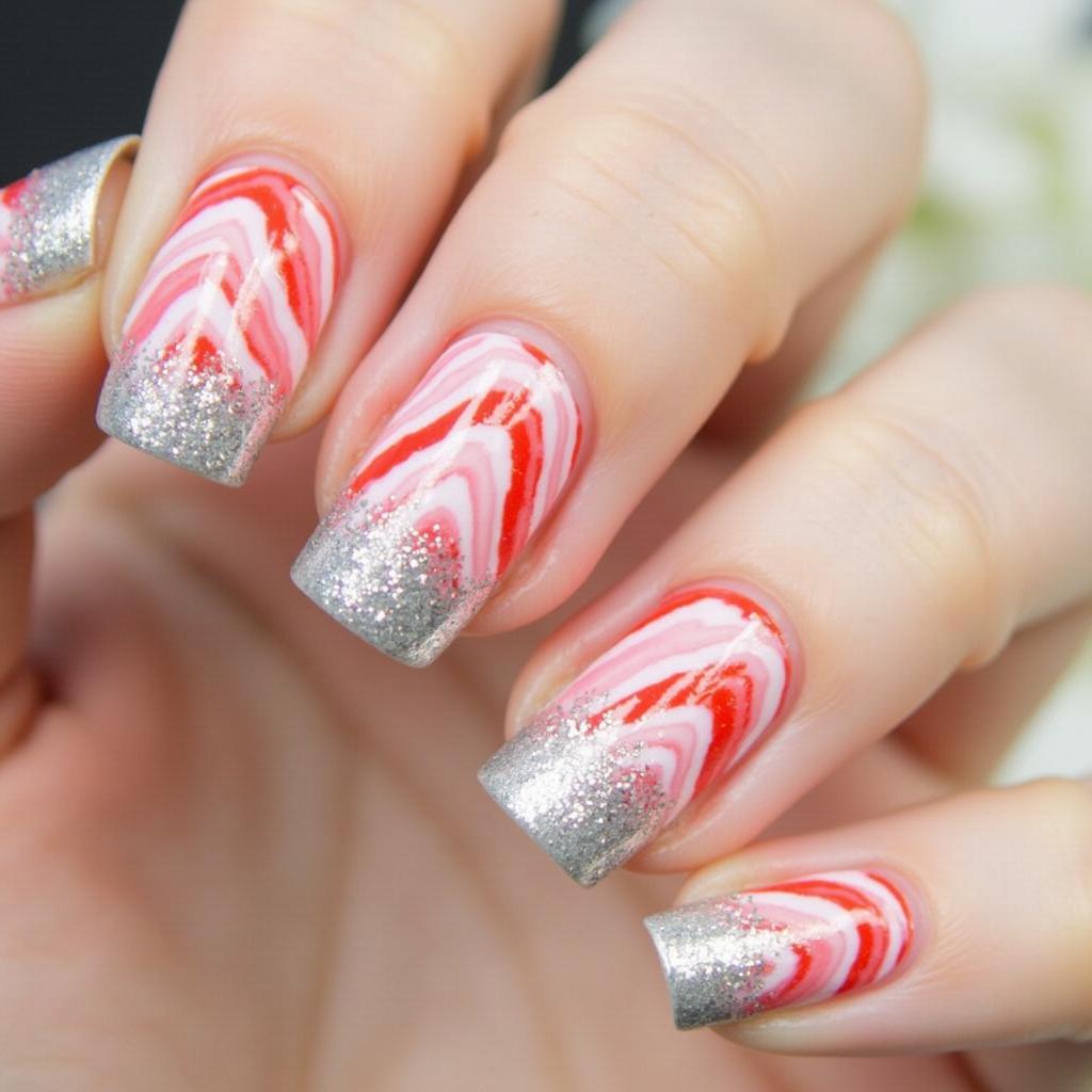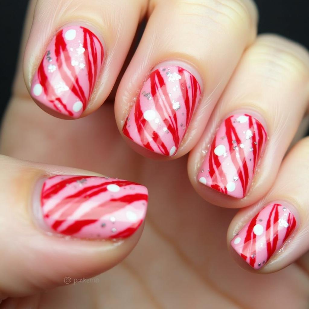 3. Glittery Candy Cane Nails
