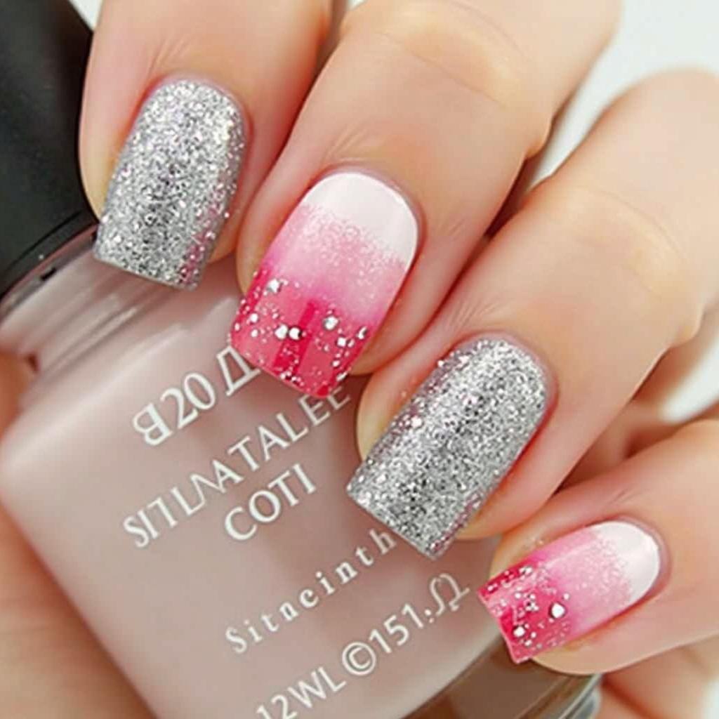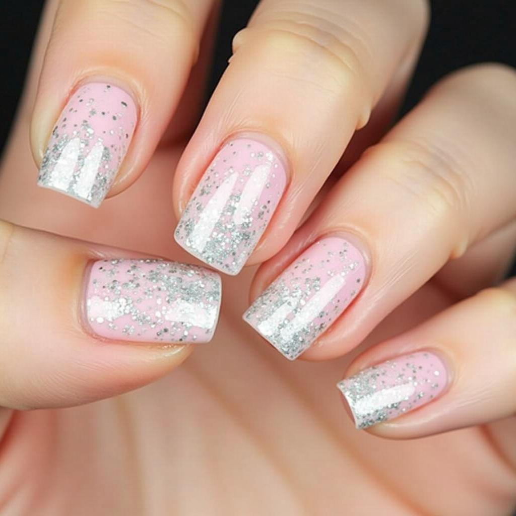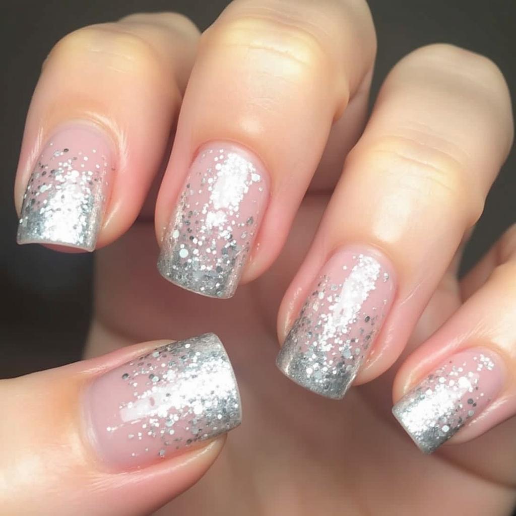 A silver glitter gradient from the tips of your candy cane nails creates a subtle but festive touch of sparkle. The glitter fades out from the tips, providing a soft, elegant shine.