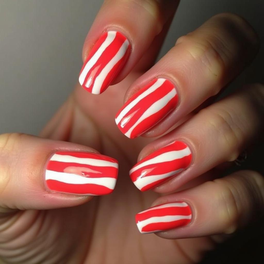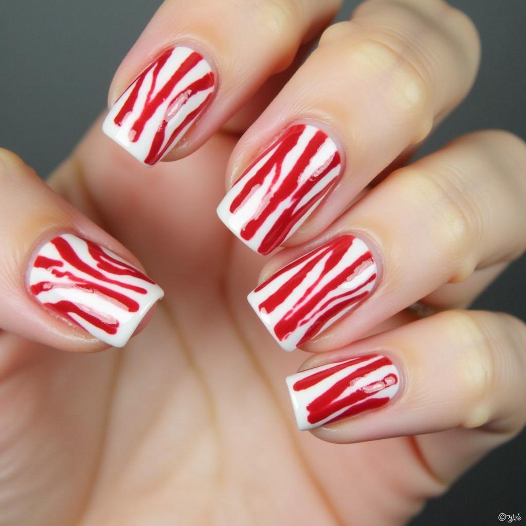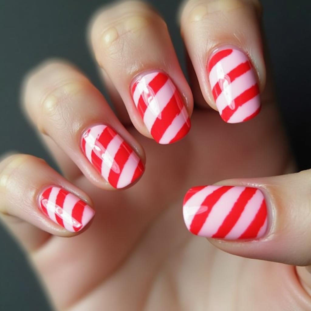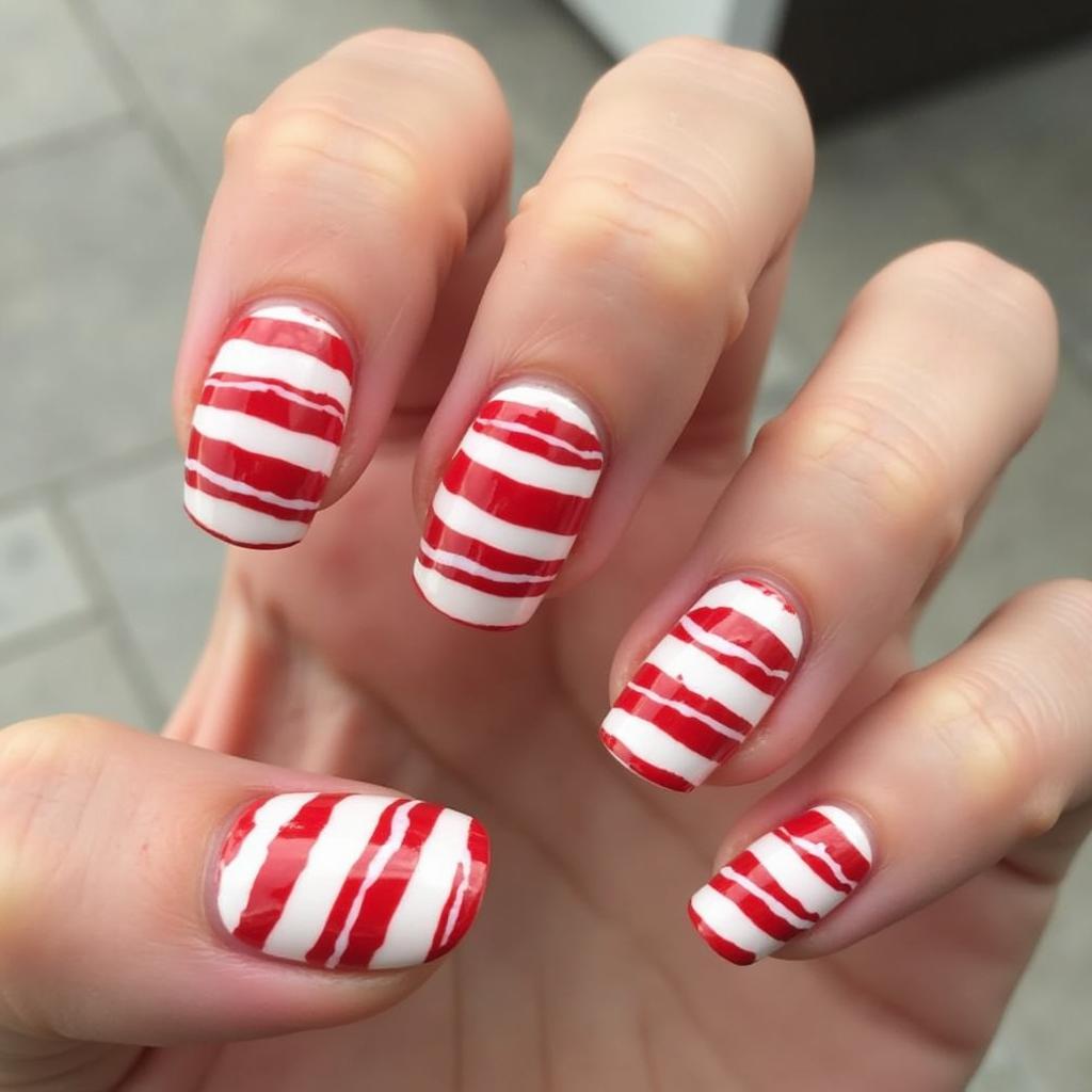 28. Candy Cane Nails with Glossy Finish