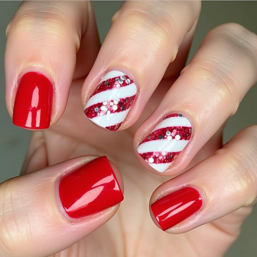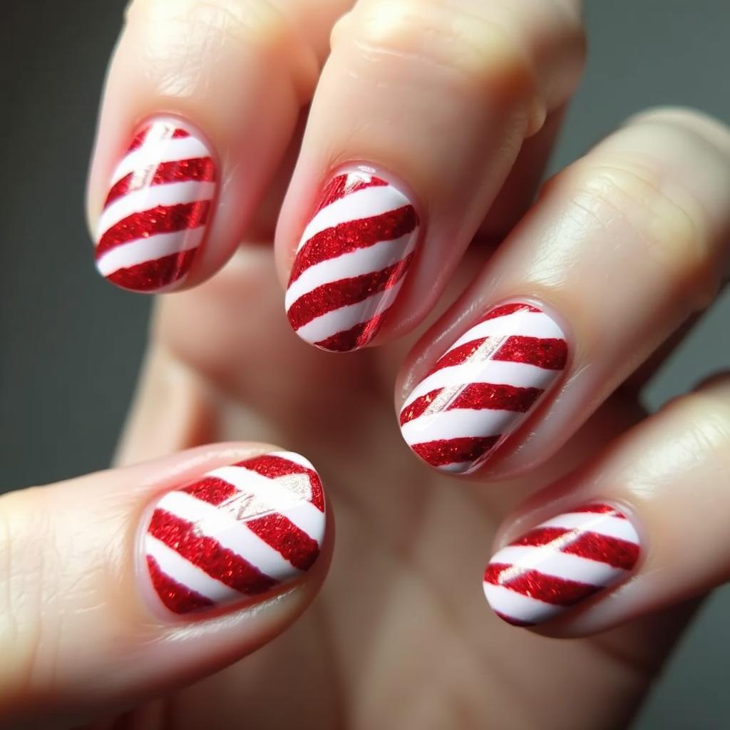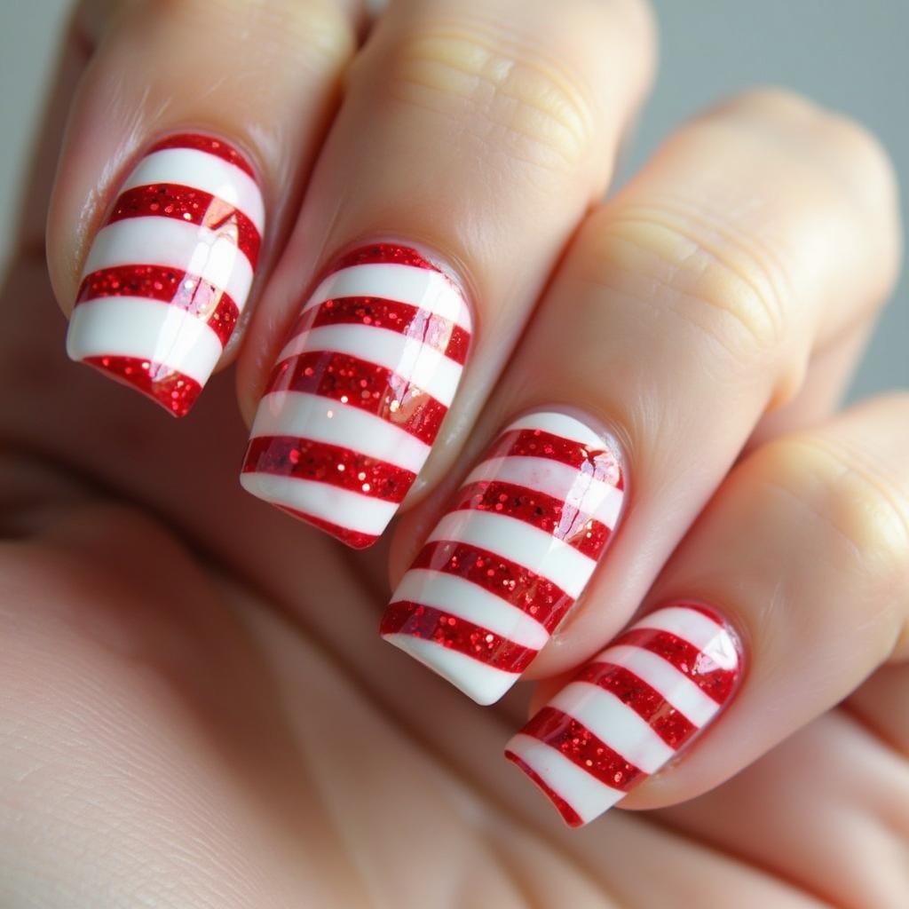 Add some holiday sparkle to your candy cane design by incorporating glitter. Glittery red and white stripes can bring an extra level of glam to your nails while maintaining that classic candy cane look.