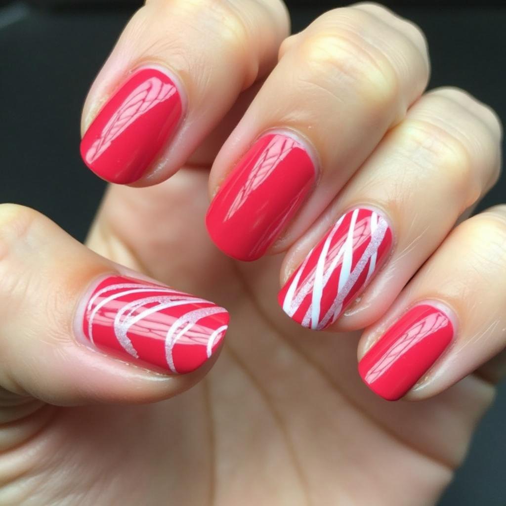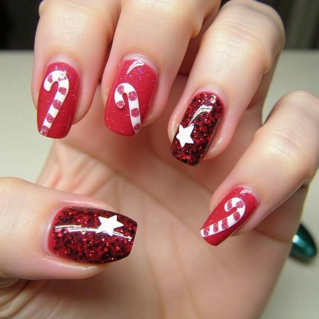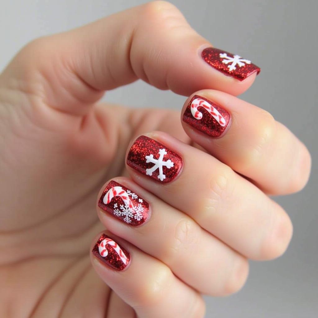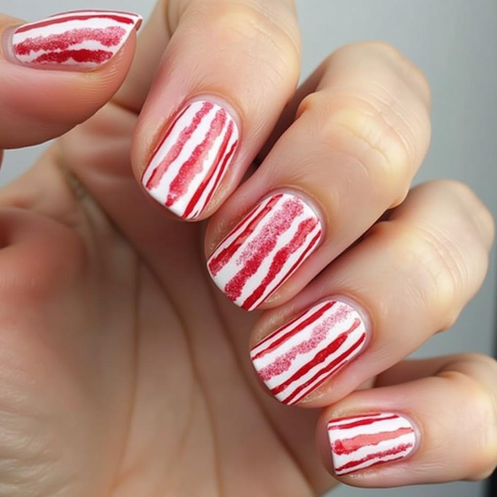 Add some holiday sparkle to your candy cane design by incorporating glitter. Glittery red and white stripes can bring an extra level of glam to your nails while maintaining that classic candy cane look.