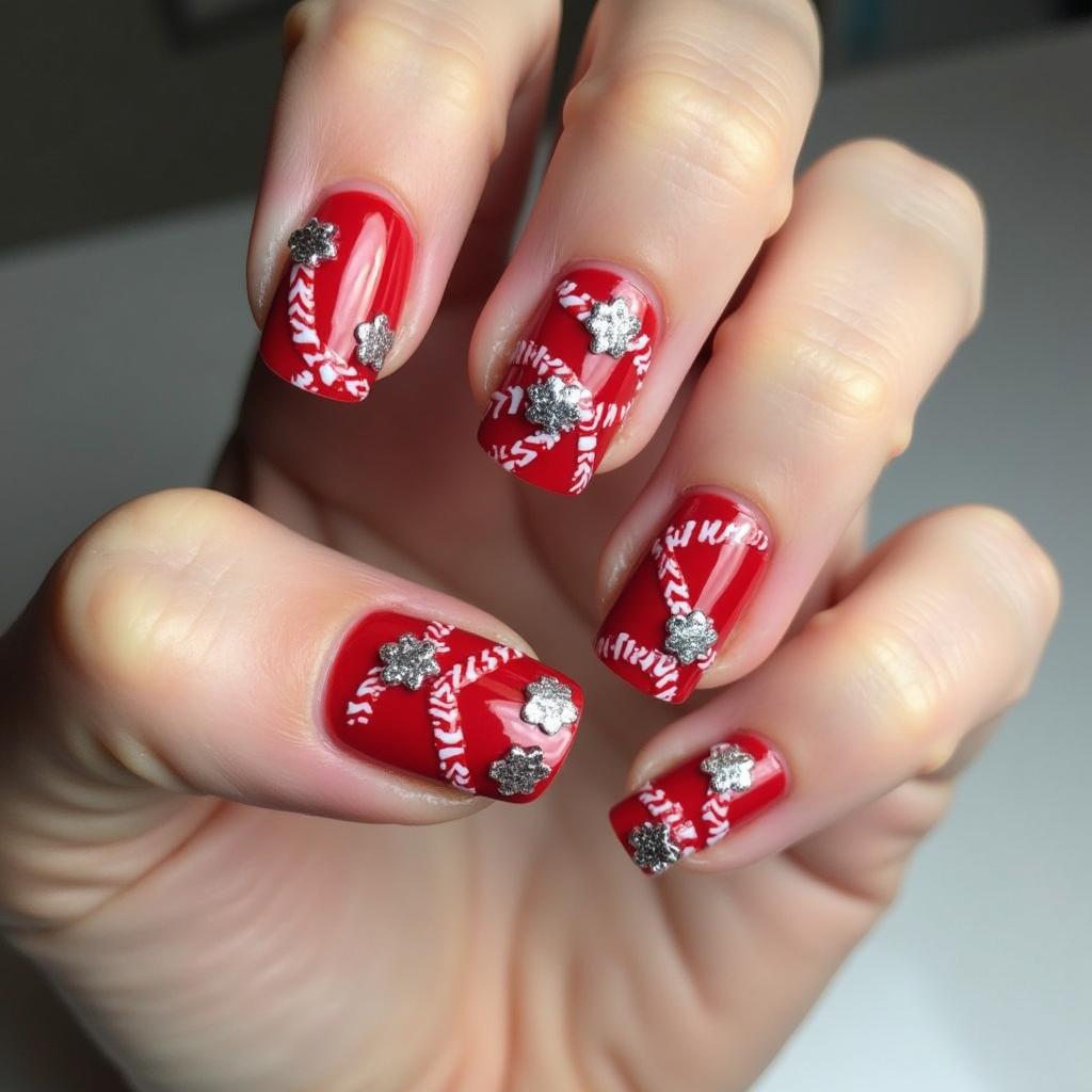 Incorporate silver snowflakes along with your candy cane stripes to create a sparkling winter look. The silver snowflakes add a delicate touch that elevates the overall design while maintaining the festive spirit.