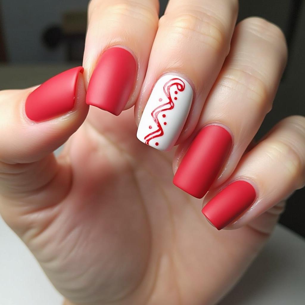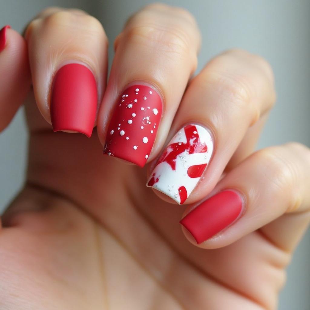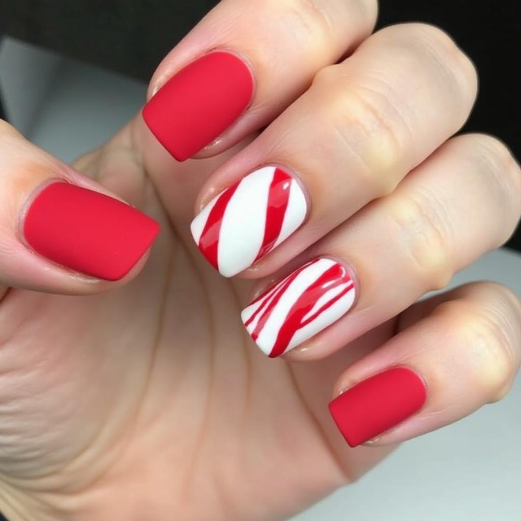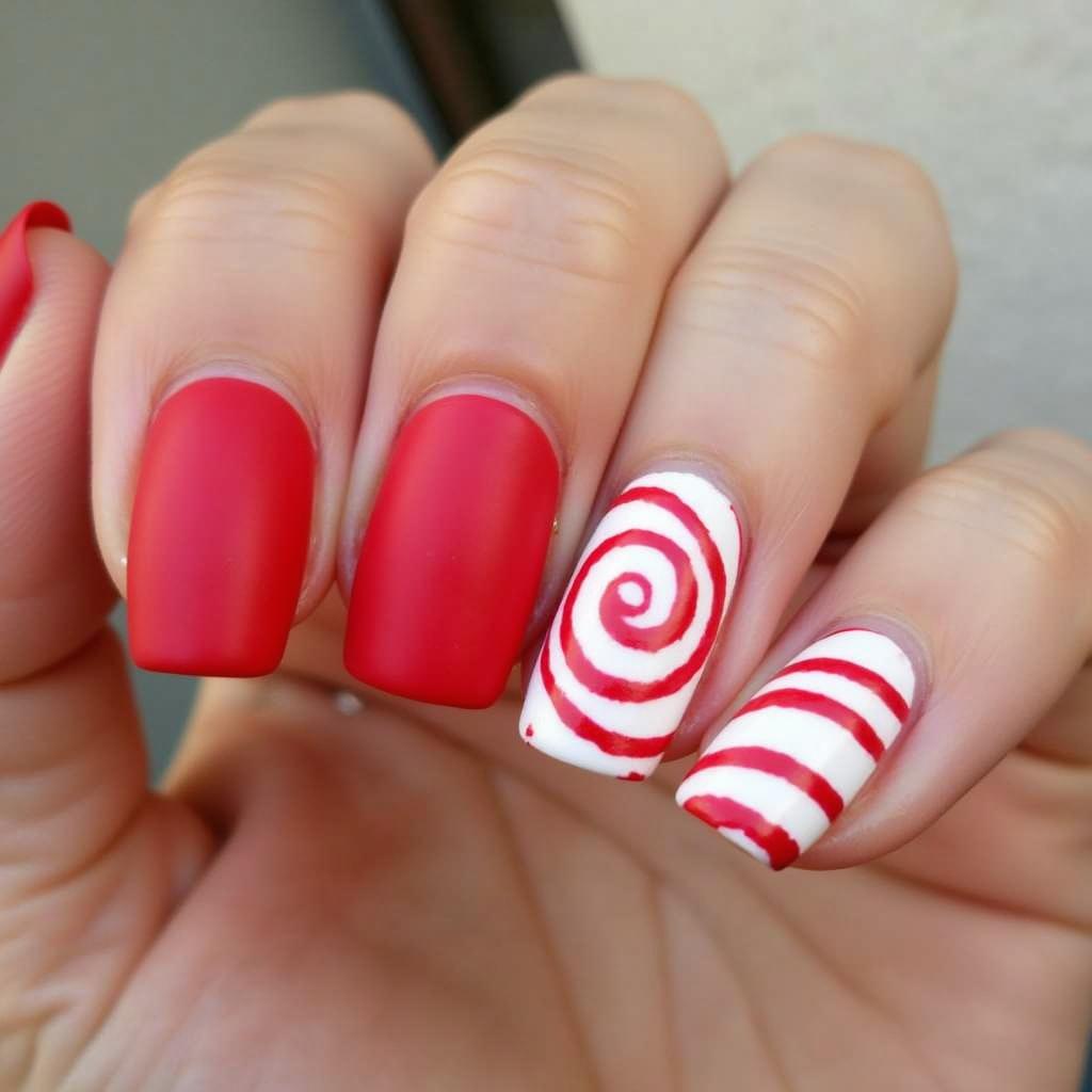 5. Matte Red and White Candy Cane Nails