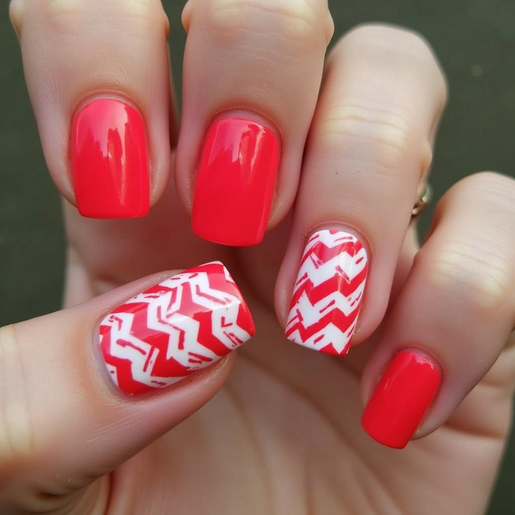 For a bolder look, try neon red and white candy cane nails. The bright neon shades will make your candy cane design stand out, giving your holiday style an energetic and modern twist.