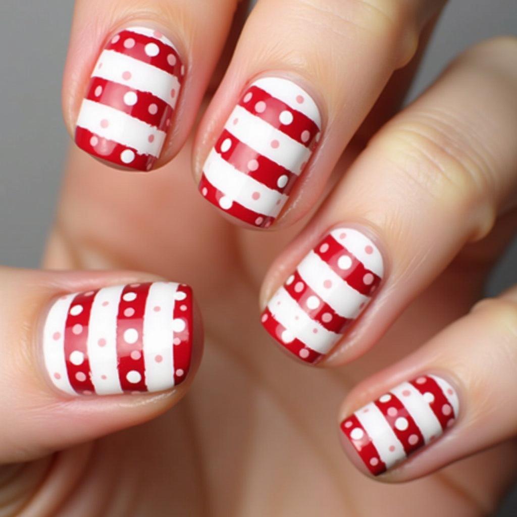 Mix up your candy cane stripes with some playful polka dots. The combination of stripes and dots creates a fun and whimsical effect that’s perfect for spreading holiday cheer.