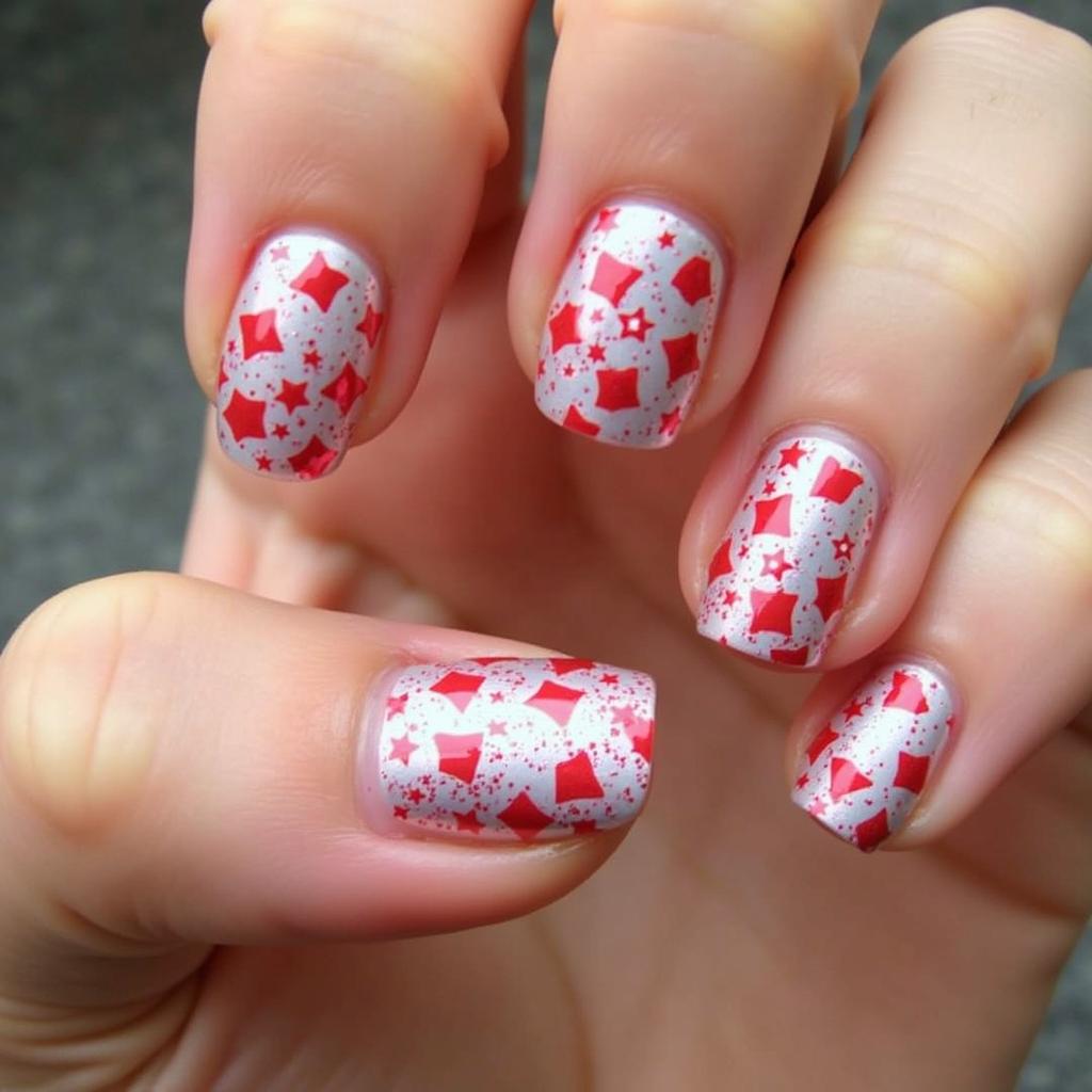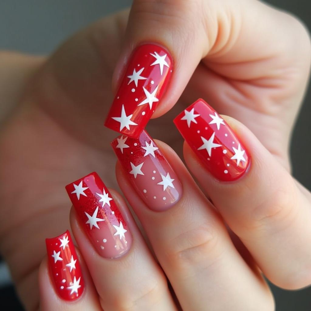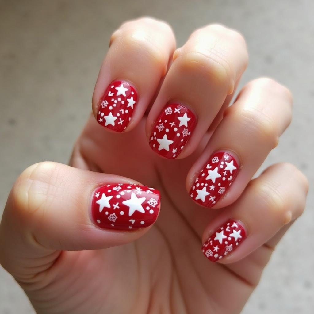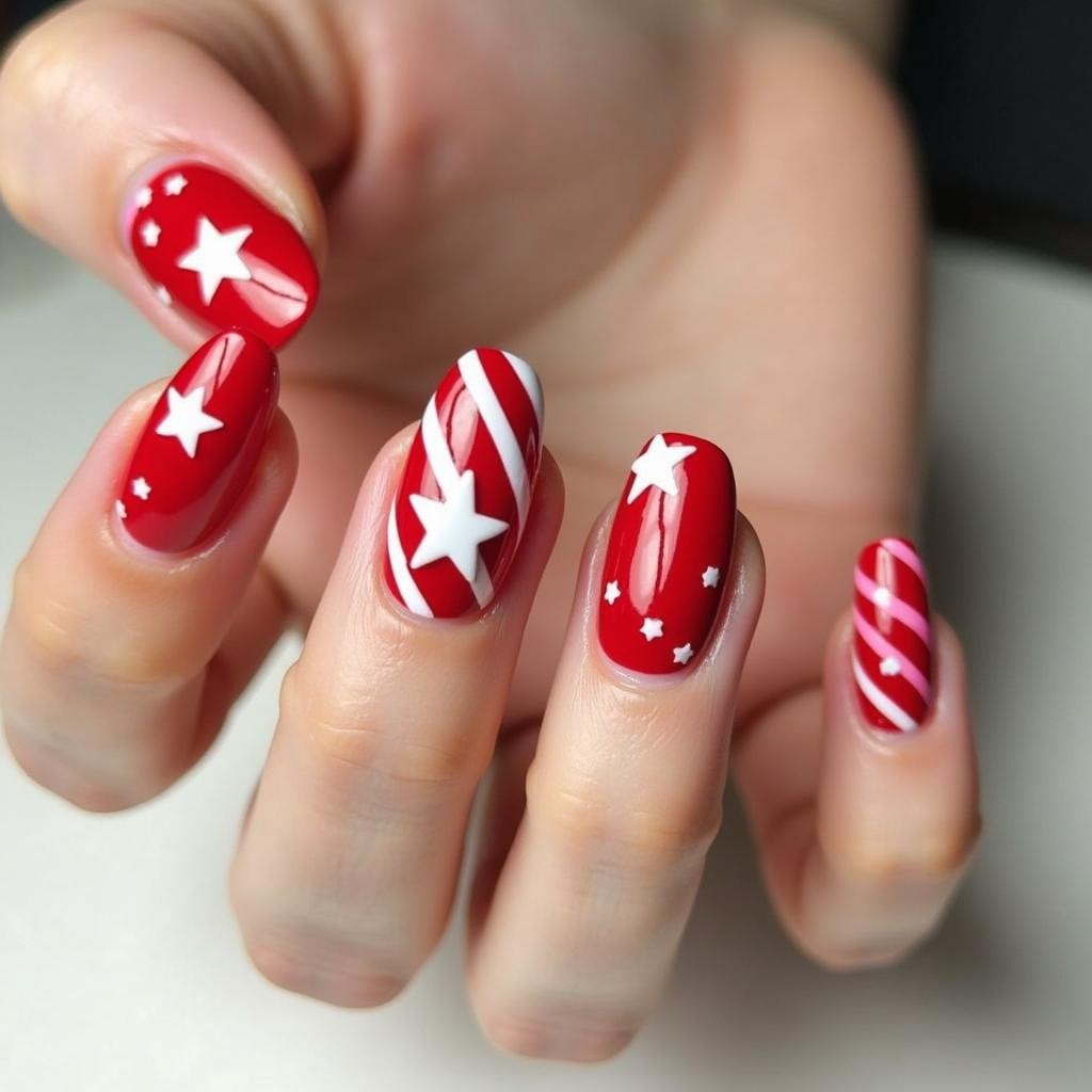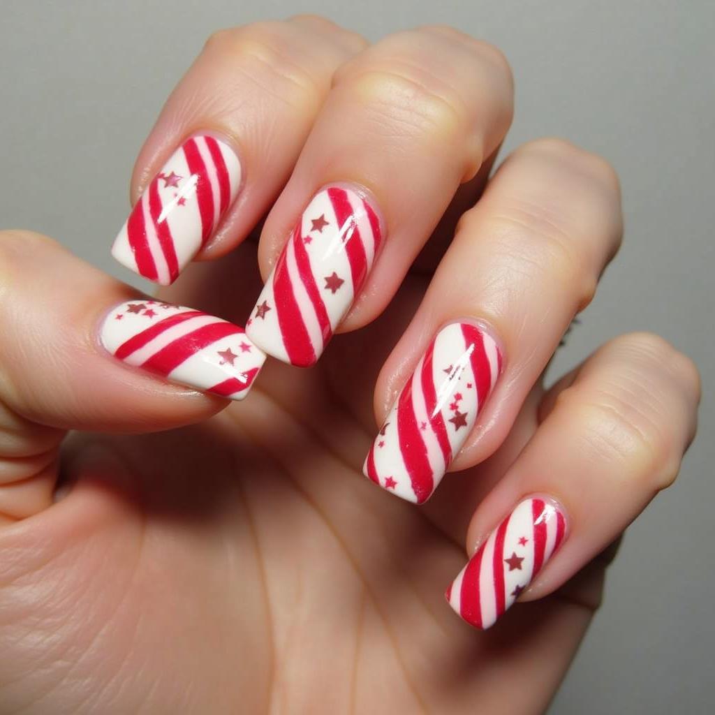 21. Red Candy Cane Nails with White Stars