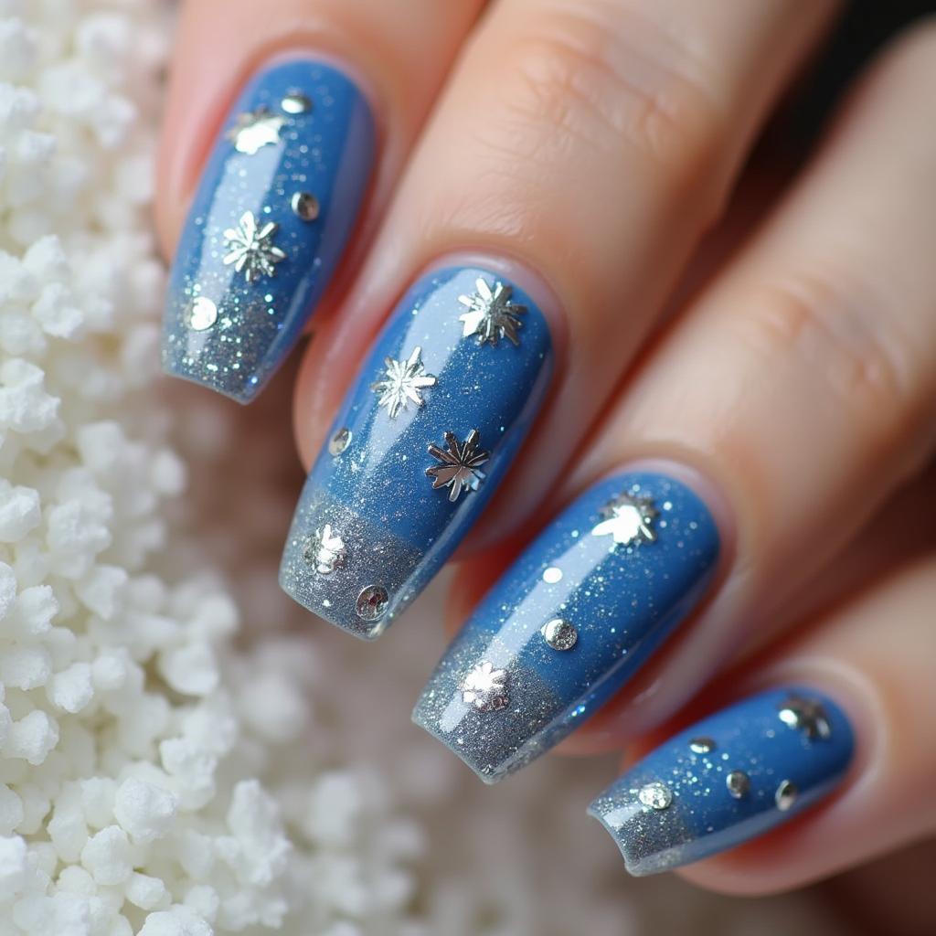 Create a gradient effect with shades of blue, white, and silver to mimic the colors of a frosty winter day. This design is simple yet elegant and works beautifully for a combination of both winter and Christmas themes.