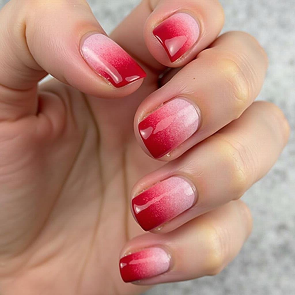 Red nails with frosted white tips create a chic and frosty look. The red base represents Christmas, while the frosted tips add a wintry touch, perfect for a holiday celebration.