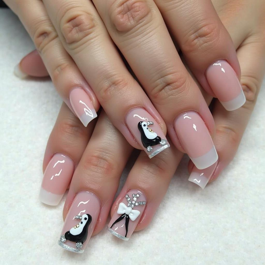 Paint little snowman faces with carrot noses on your accent nails for a playful, winter-inspired look. Add a touch of glitter for a sparkling effect that feels magical and festive.
