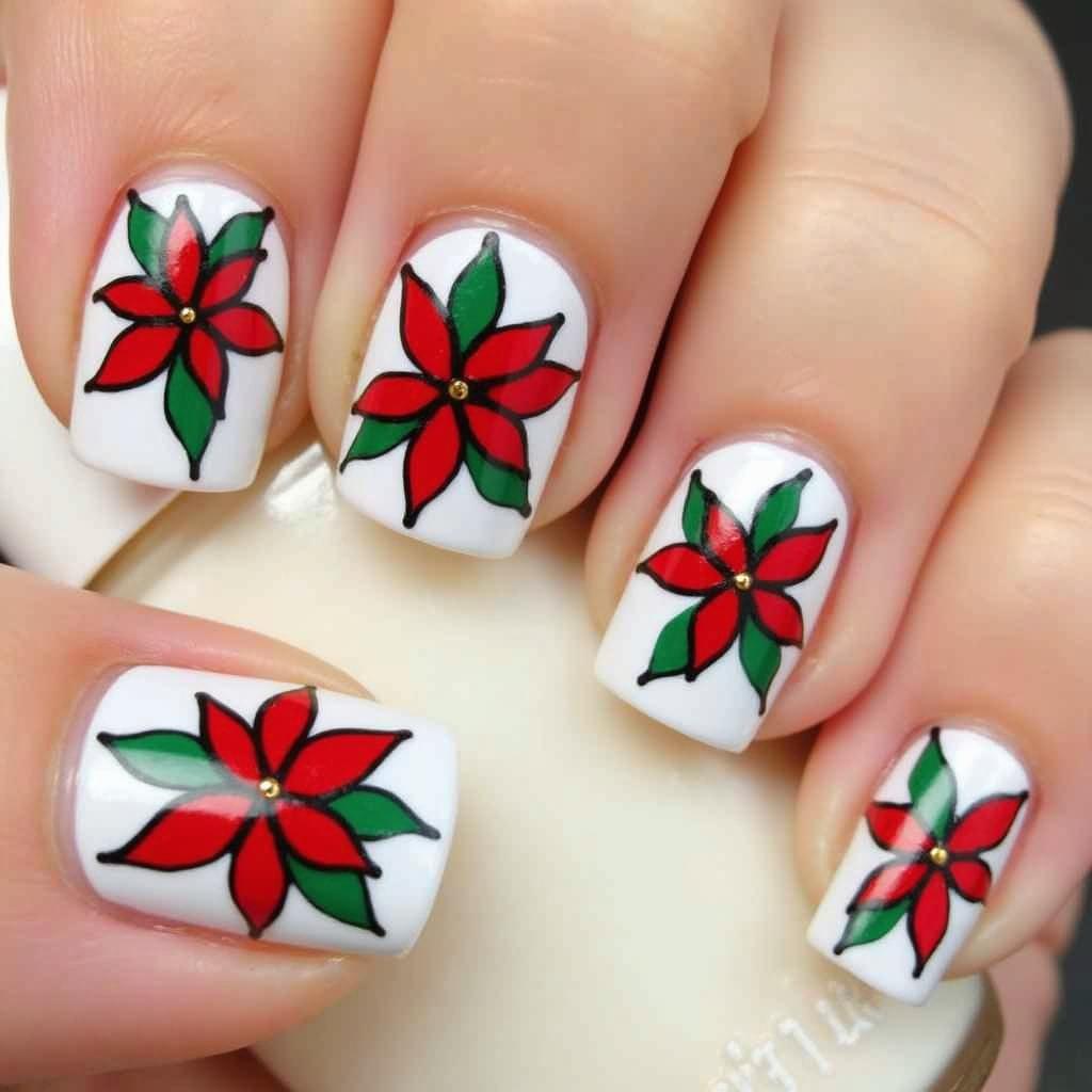 Poinsettias are a classic symbol of Christmas, and painting tiny red poinsettia flowers on a snowy white base brings both winter and Christmas themes together in a beautiful and elegant design.