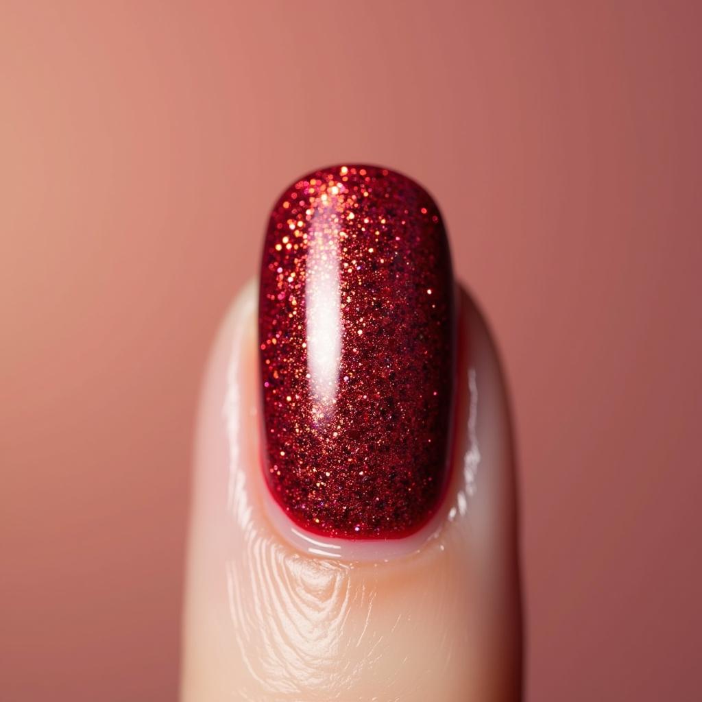 Create a bold, red glitter ombre on your nails, fading from a deep red at the base to sparkling glitter at the tips. This design brings the warmth and cheer of Christmas while adding a frosty sparkle at the tips.