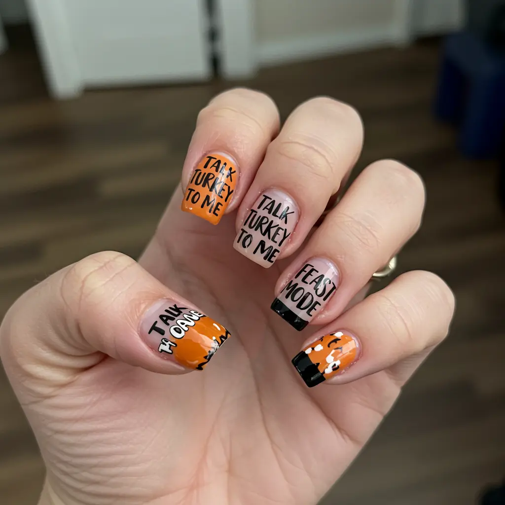 Festive Perks: Lets your nails do the talking with a dose of Thanksgiving humor.