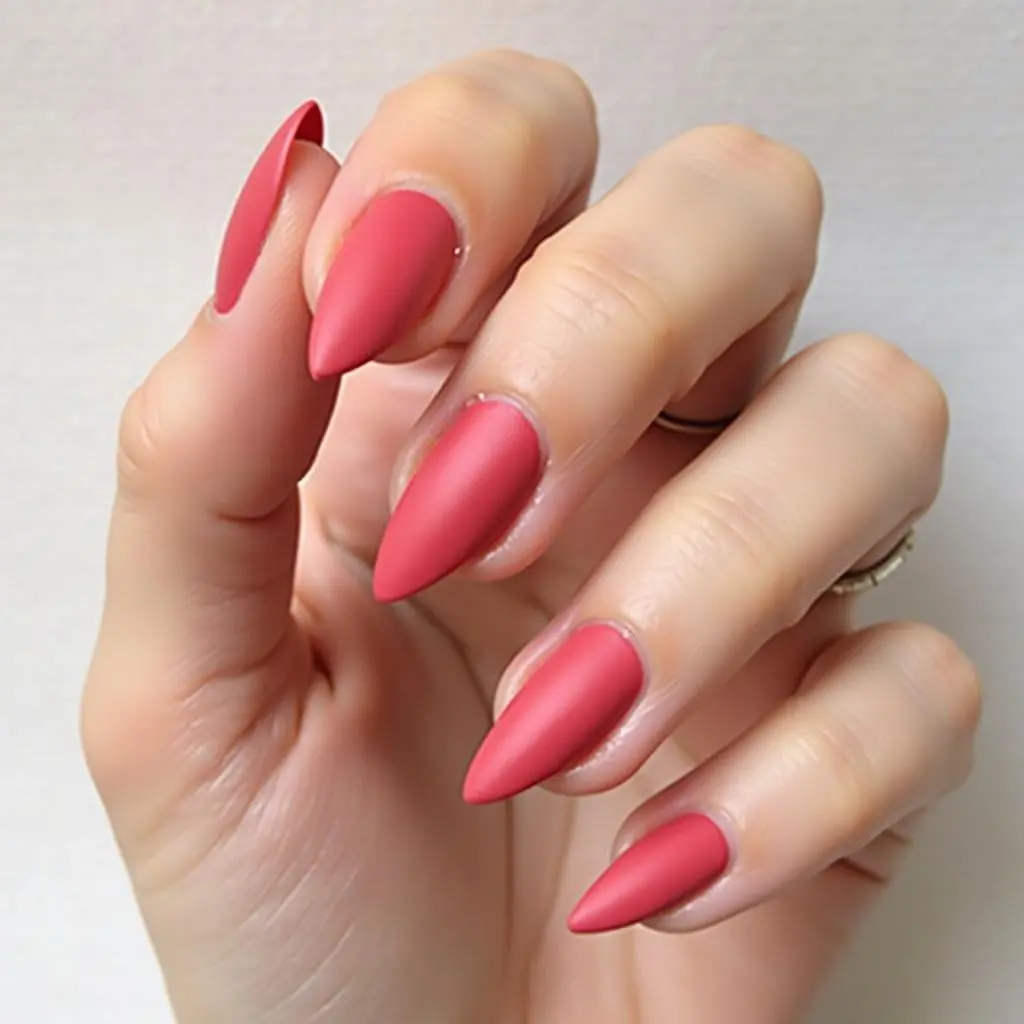 Matte pink nails with rhinestone detailing offer a touch of sparkle without overpowering the matte finish.