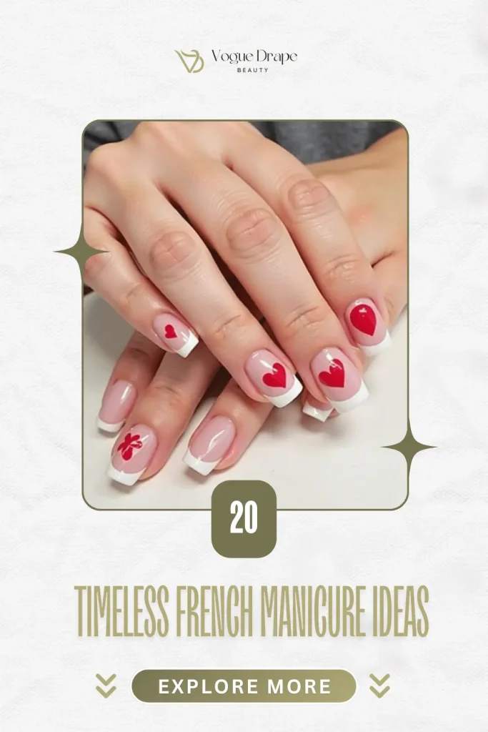 The French manicure is a classic and elegant nail style that’s been around for decades. This Valentine’s Day, why not give the timeless French manicure a romantic upgrade? These 20 fresh and creative French manicure ideas with a Valentine’s twist will help you celebrate the season of love in style, from sweet heart accents to subtle pops of red.