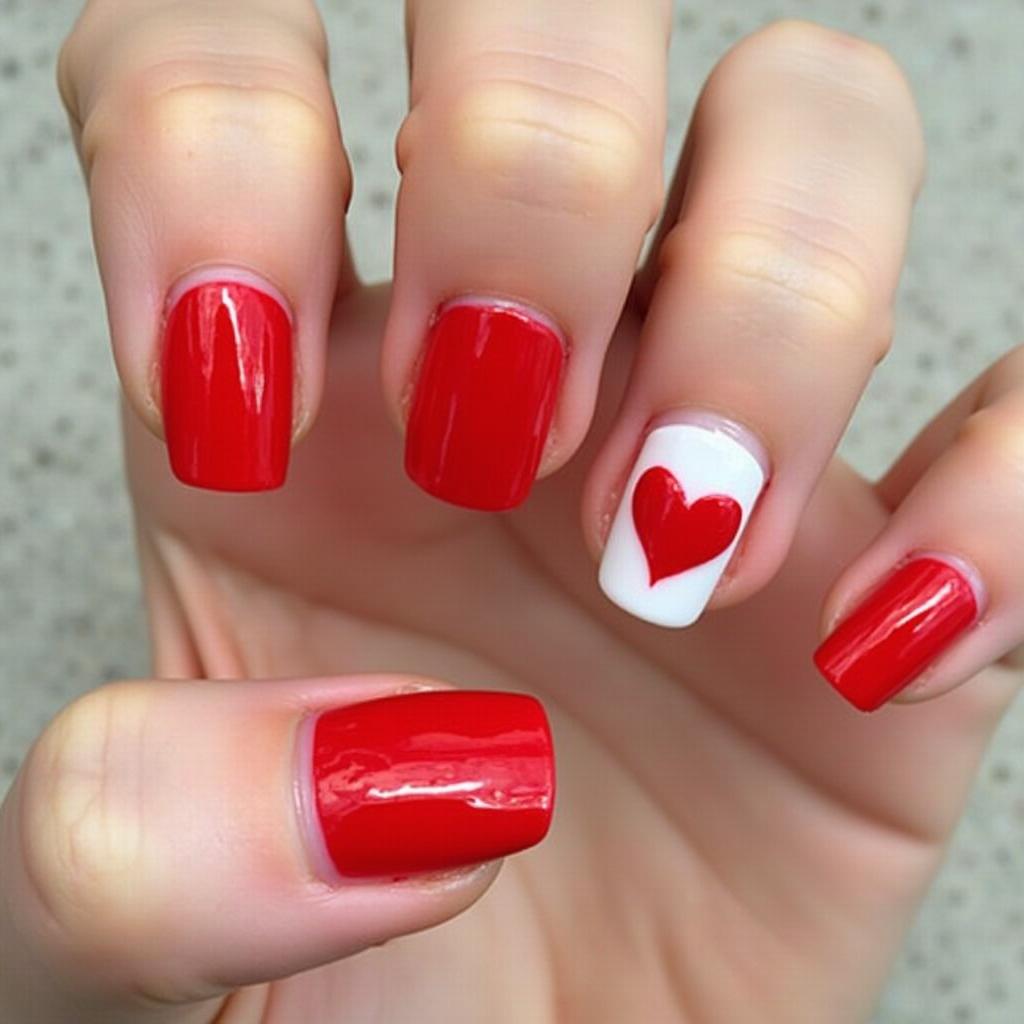 Paint a red heart-shaped lollipop on each nail, using white swirls for the design to make them stand out.