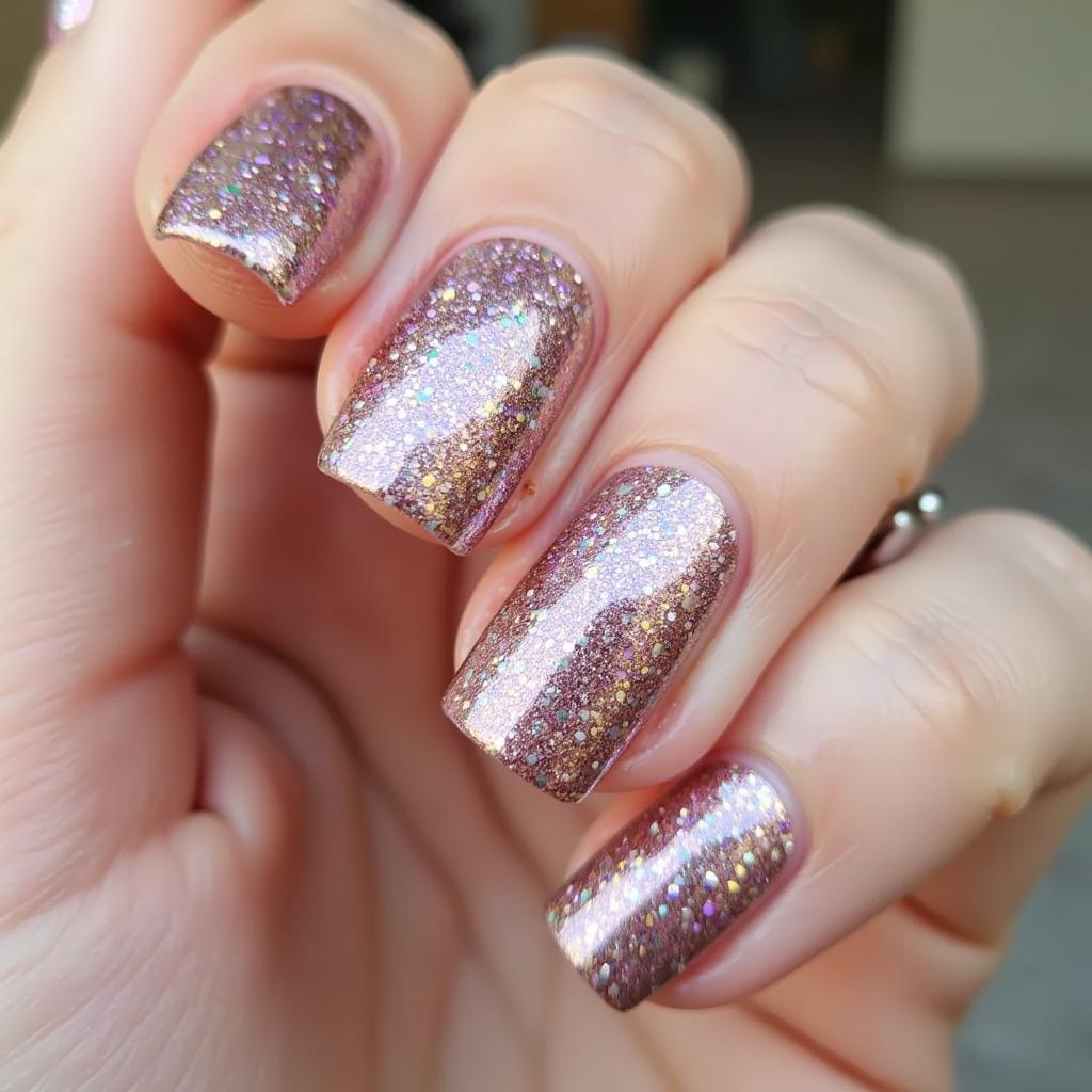 Add holographic pink glitter to the tips of your nails for a dazzling, festive look.