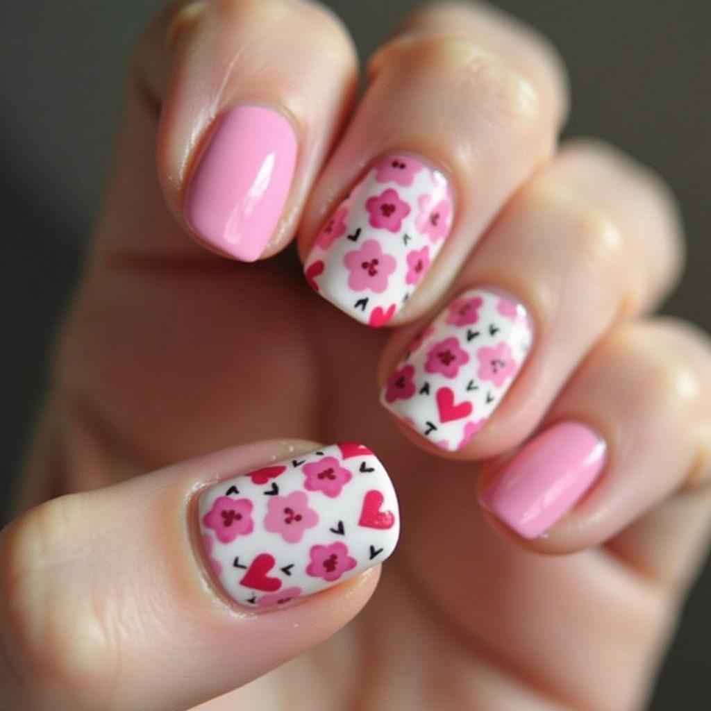 Use soft pink flowers inside heart shapes for a delicate, feminine design.