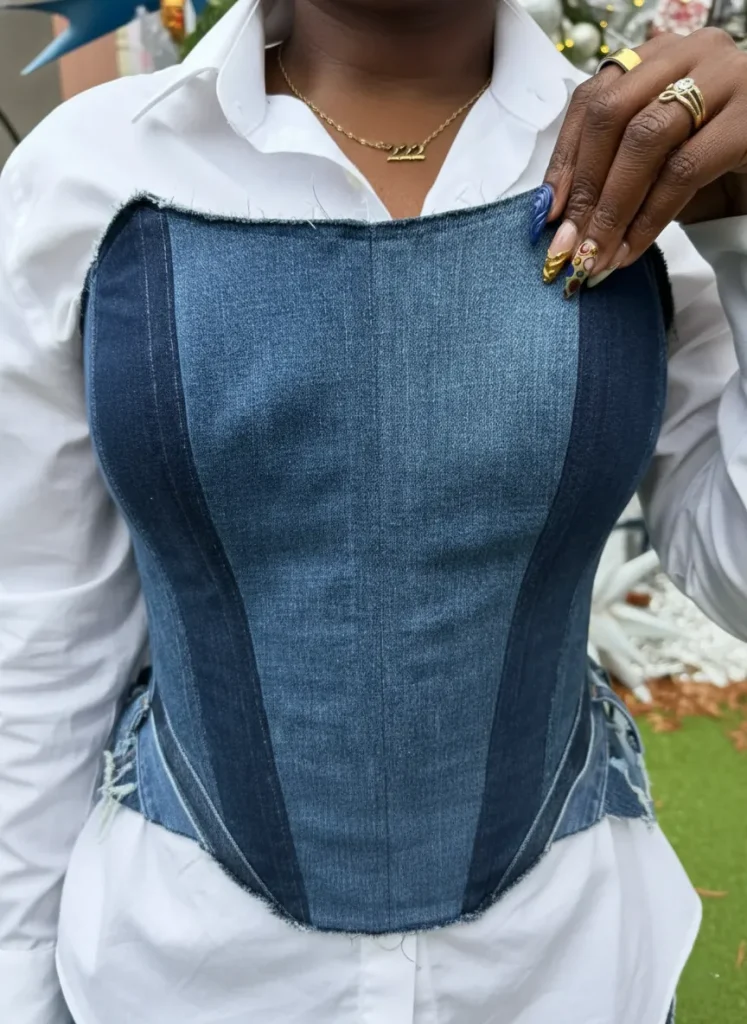 For curves, ensure the denim has a small percentage of elastane. This allows the boning to hug your figure without restricting your breathing.